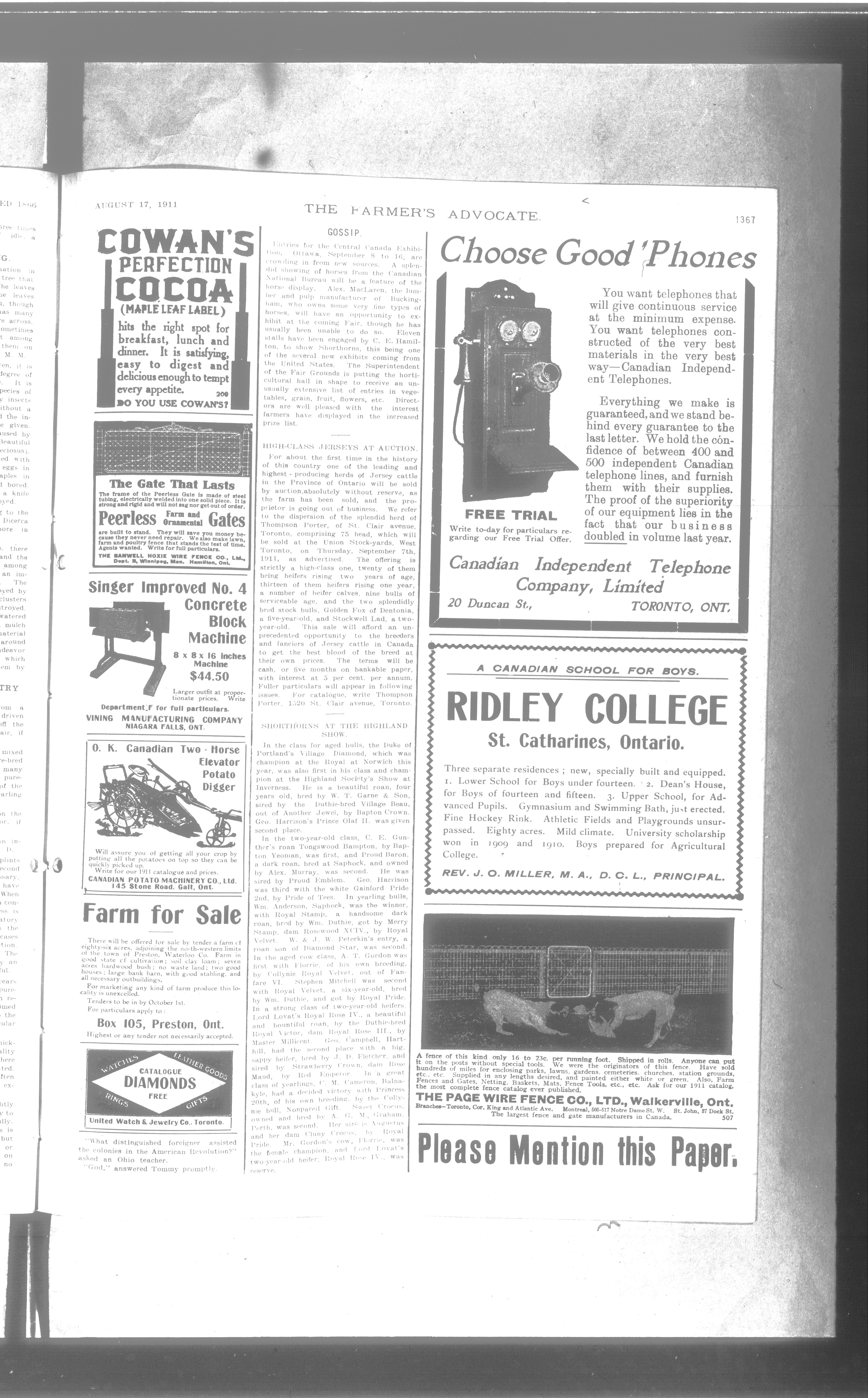 Farmer's Advocate and Home Magazine : Vol. XLVI, No. 986 (August 17, 1911)