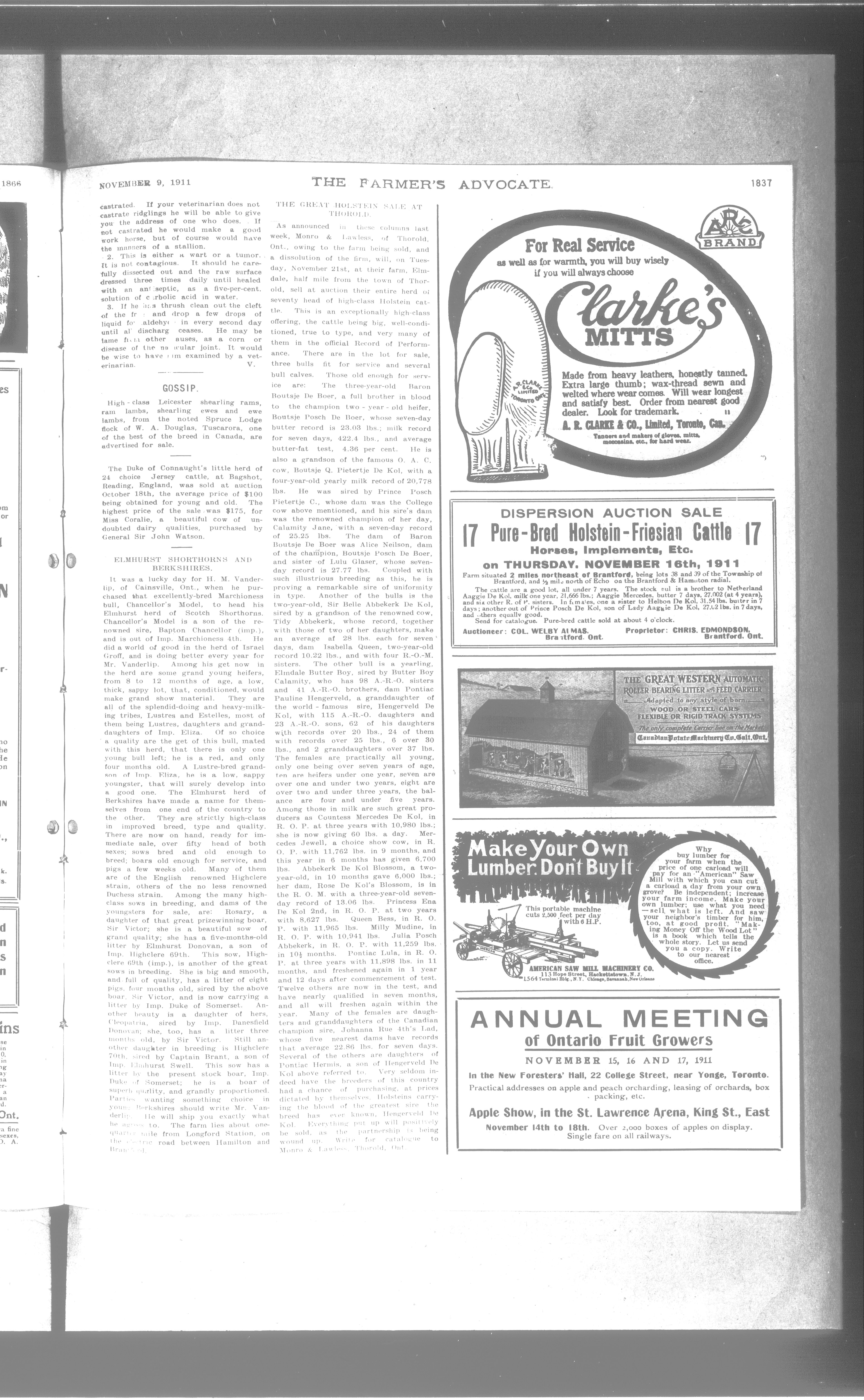 Farmer's Advocate and Home Magazine : Vol. XLVI, No. 998 (November 9, 1911)