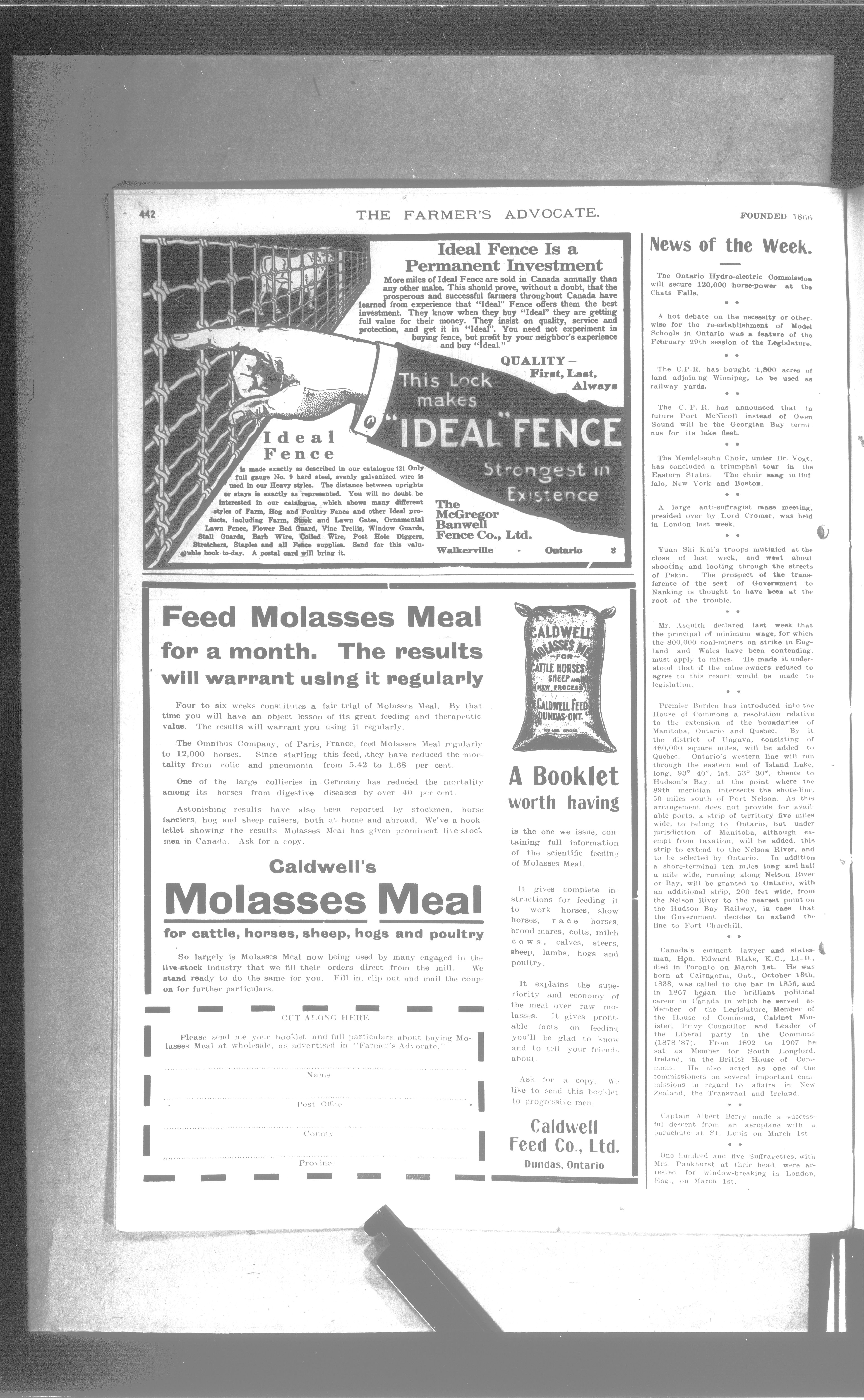 Farmer's Advocate and Home Magazine : Vol. XLVII, No. 1015 (March 7, 1912)