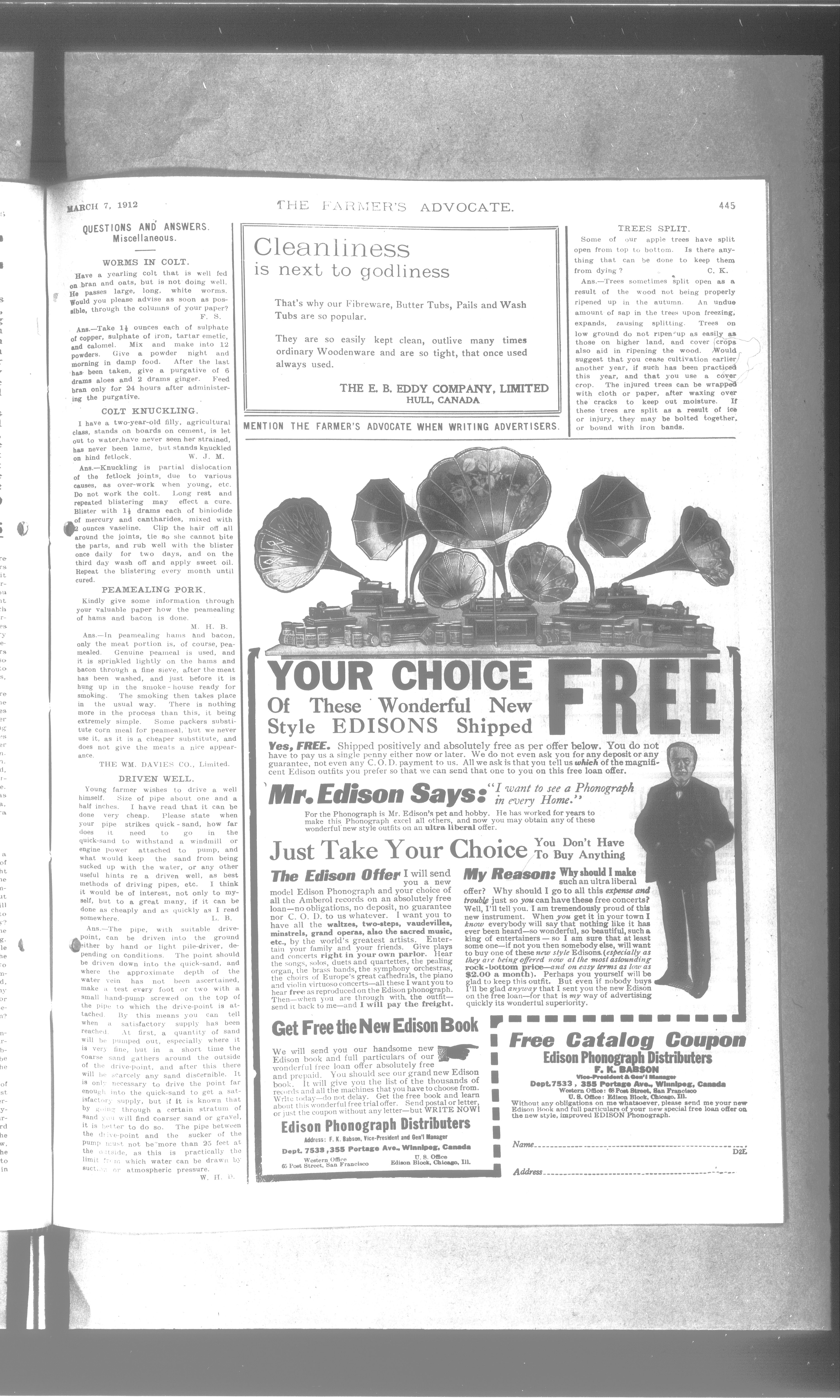 Farmer's Advocate and Home Magazine : Vol. XLVII, No. 1015 (March 7, 1912)