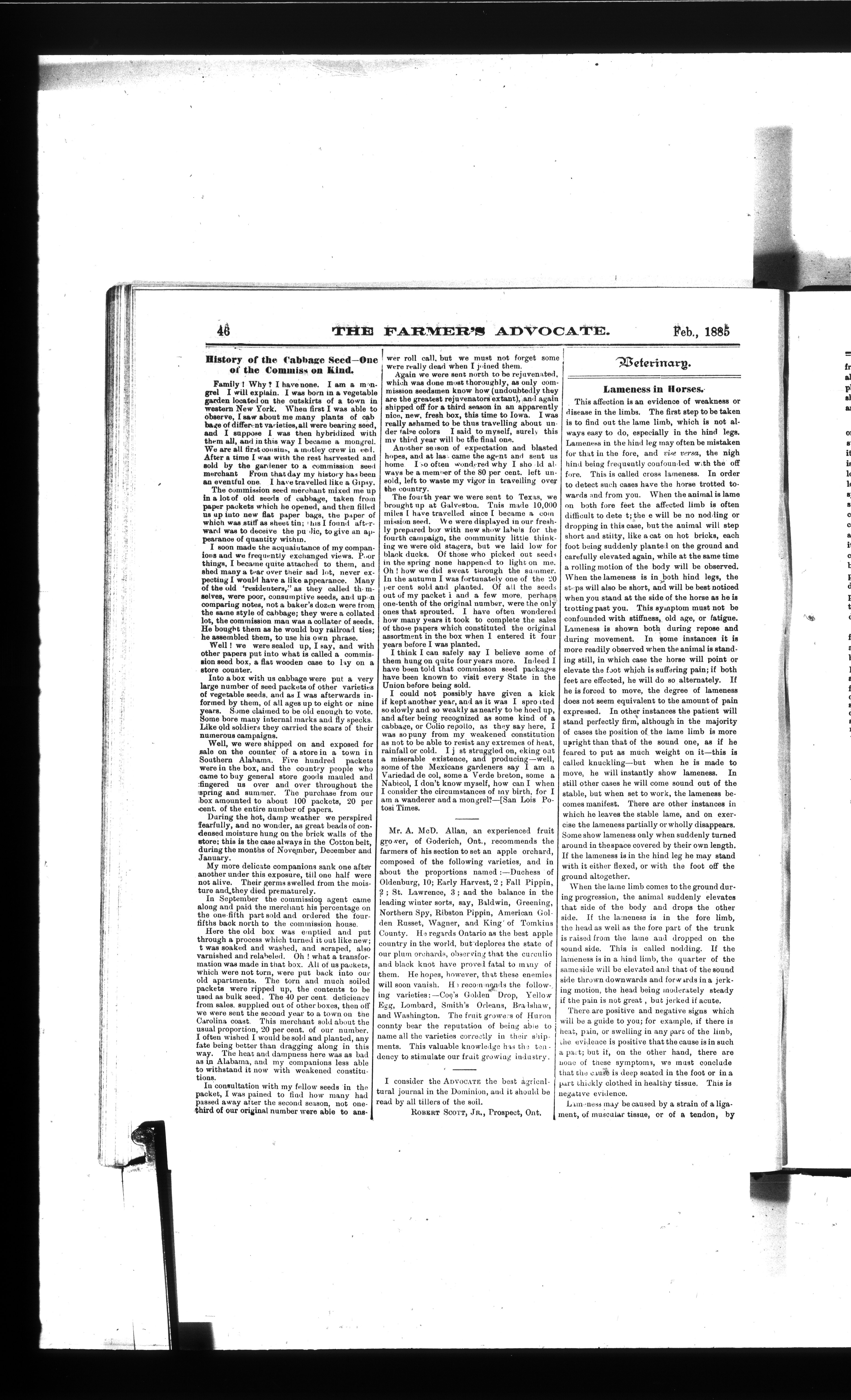 Farmer's Advocate and Home Magazine : Vol. XX, No. 230 (February 1885)
