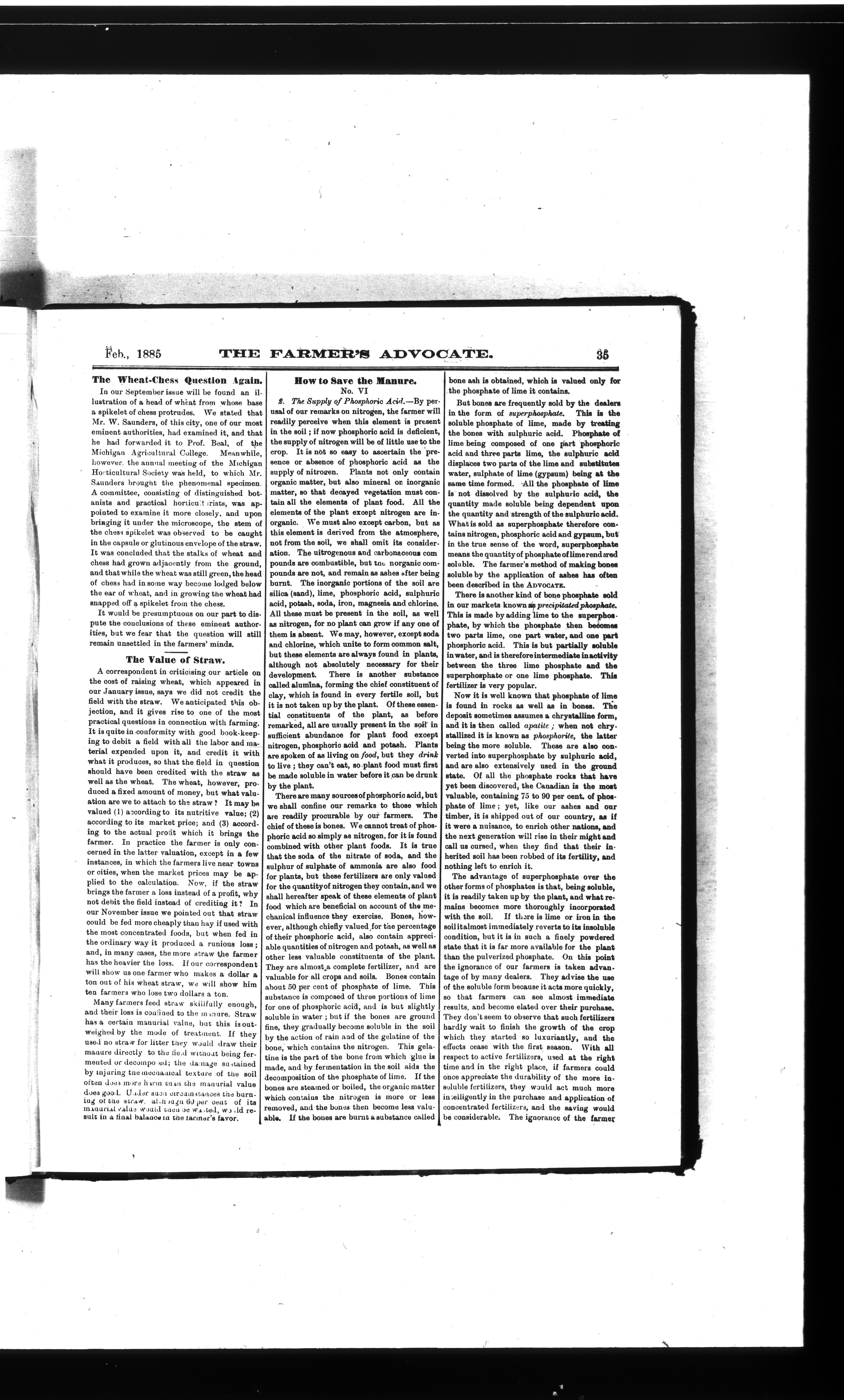 Farmer's Advocate and Home Magazine : Vol. XX, No. 230 (February 1885)