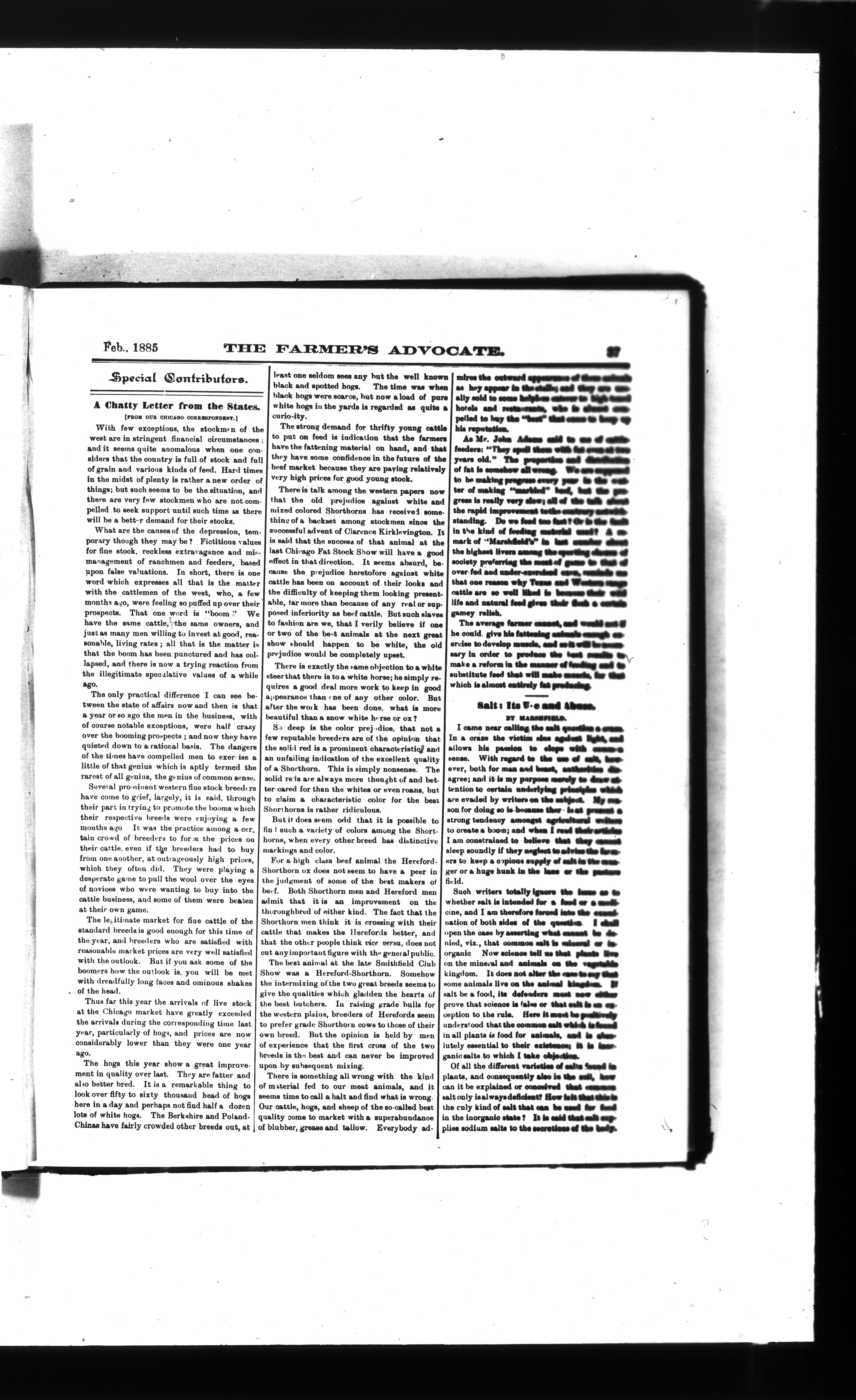 Farmer's Advocate and Home Magazine : Vol. XX, No. 230 (February 1885)