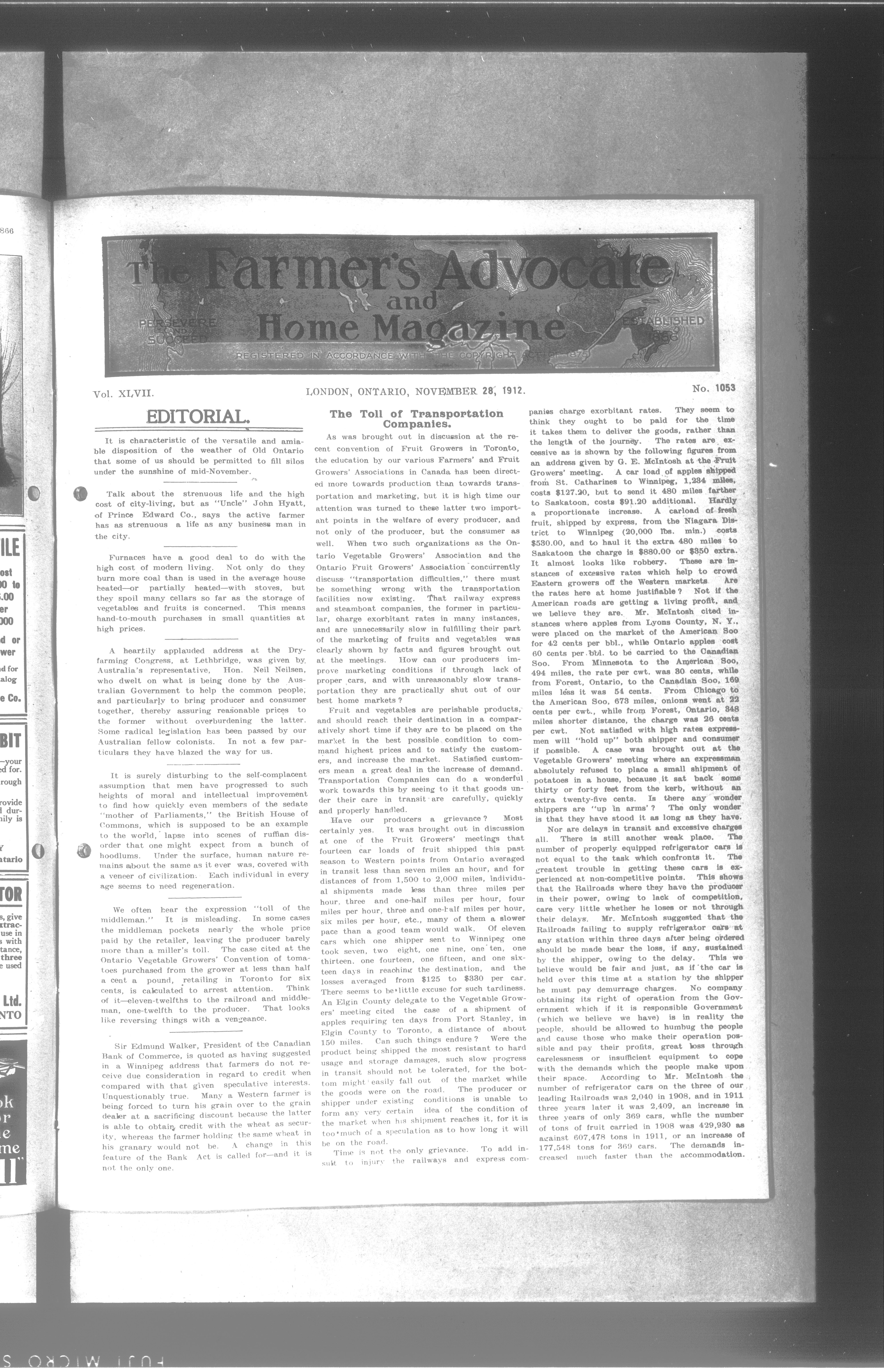 Farmer's Advocate and Home Magazine : Vol. XLVII, No. 1053 (November 28, 1912)