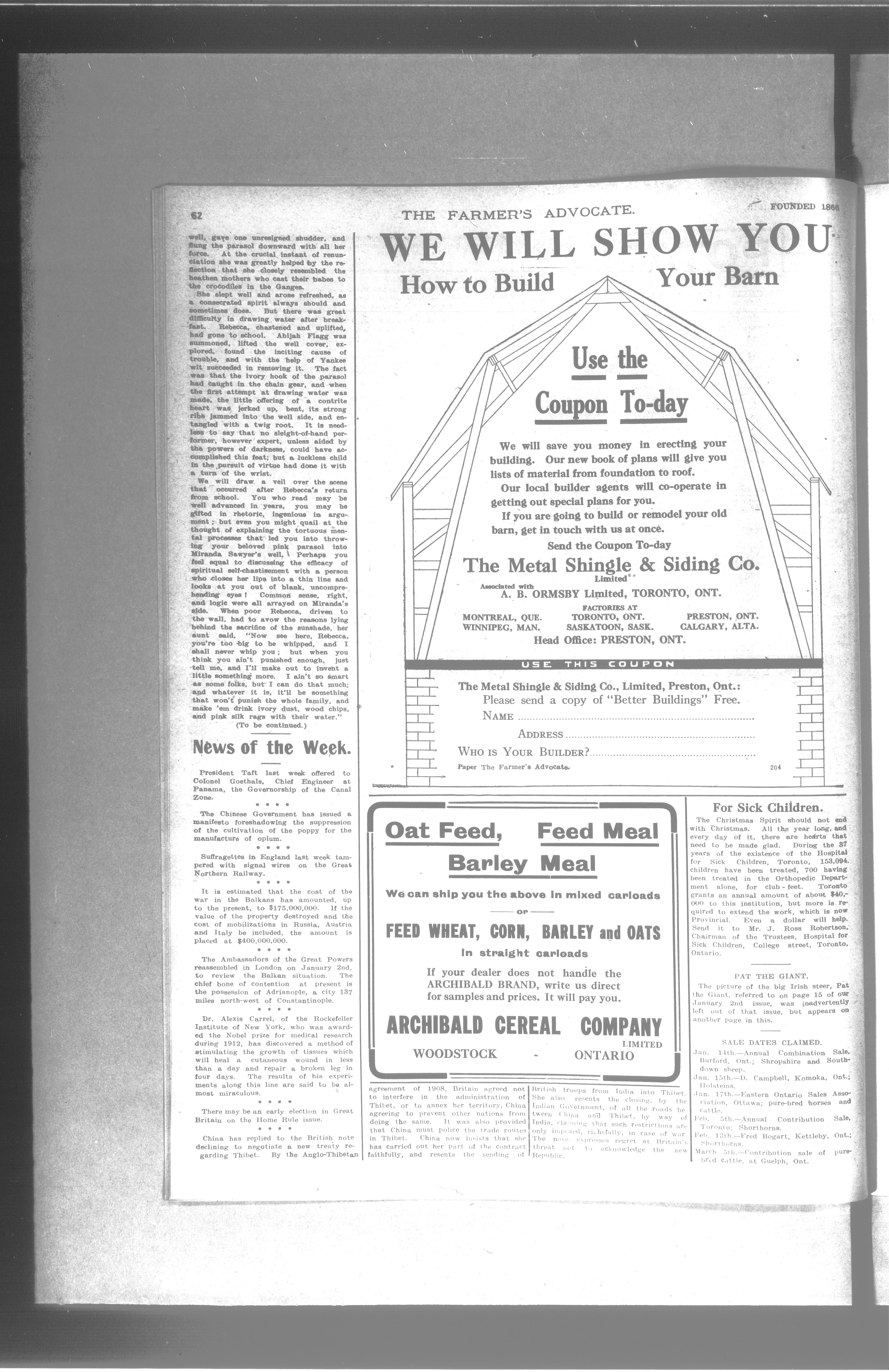 Farmer's Advocate and Home Magazine : Vol. XLVIII, No. 1059 (January 9, 1913)