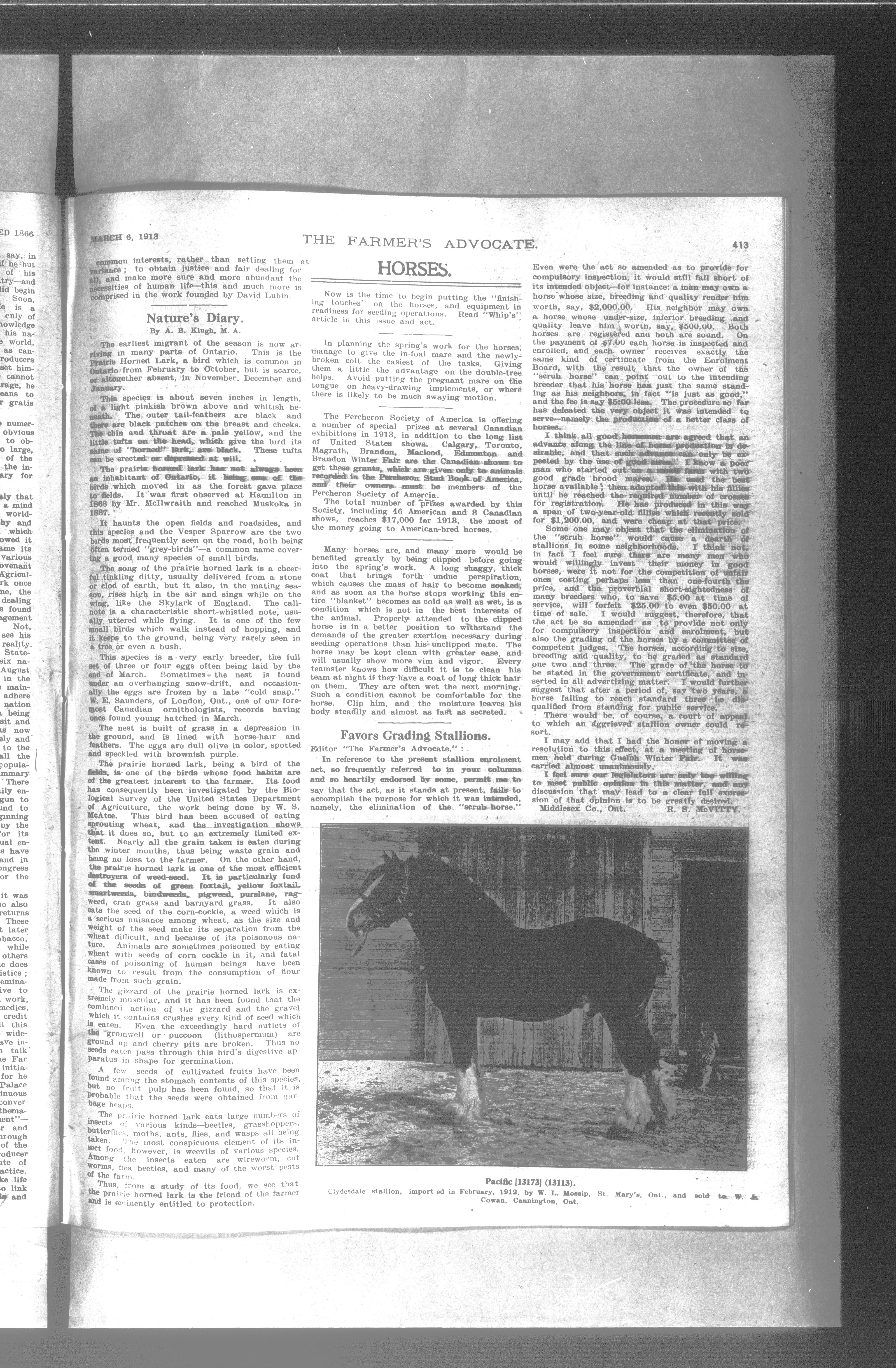 Farmer's Advocate and Home Magazine : Vol. XLVIII, No. 1067 (March 6, 1913)
