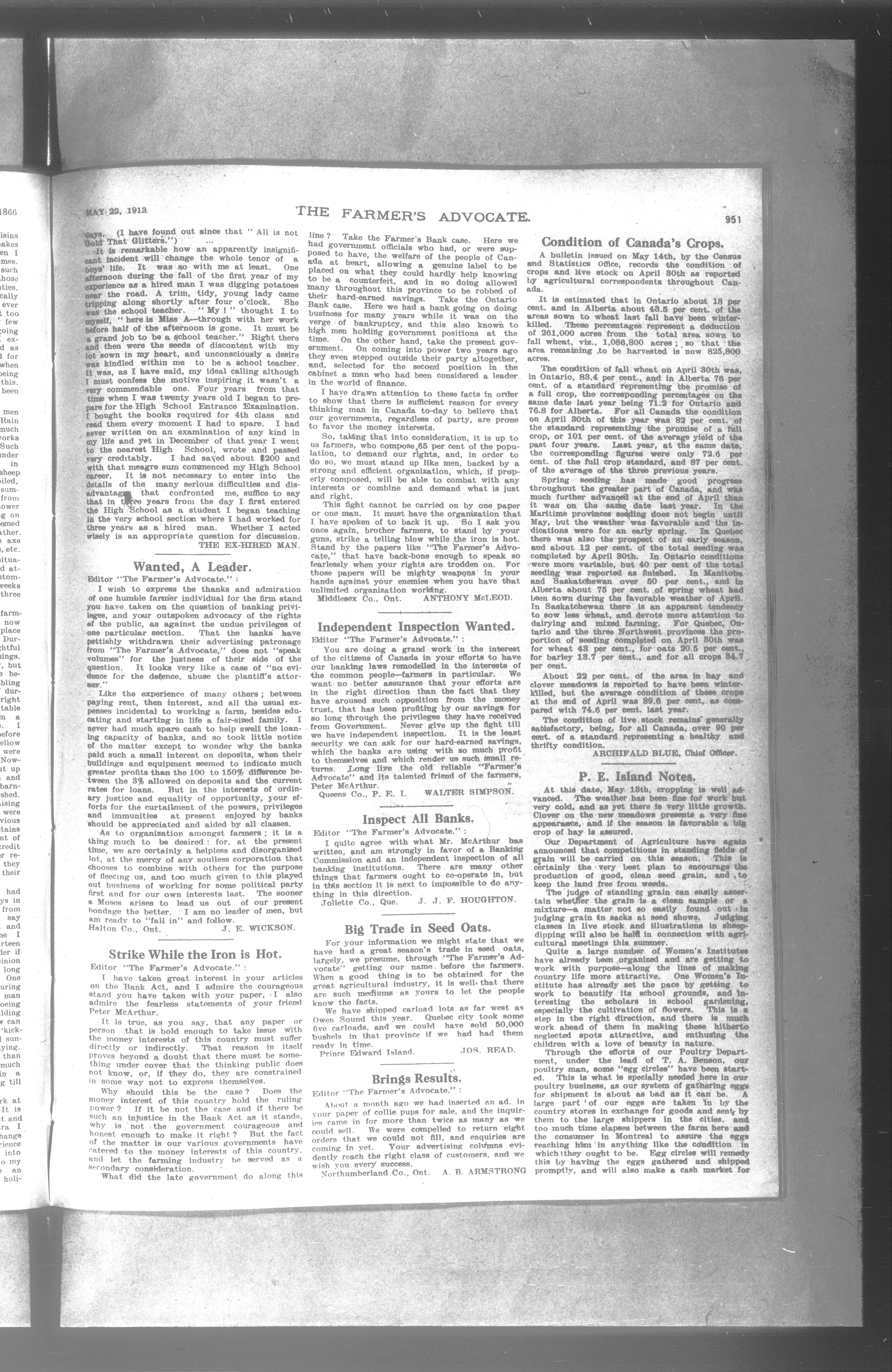 Farmer's Advocate and Home Magazine : Vol. XLVIII, No. 1078 (May 22, 1913)