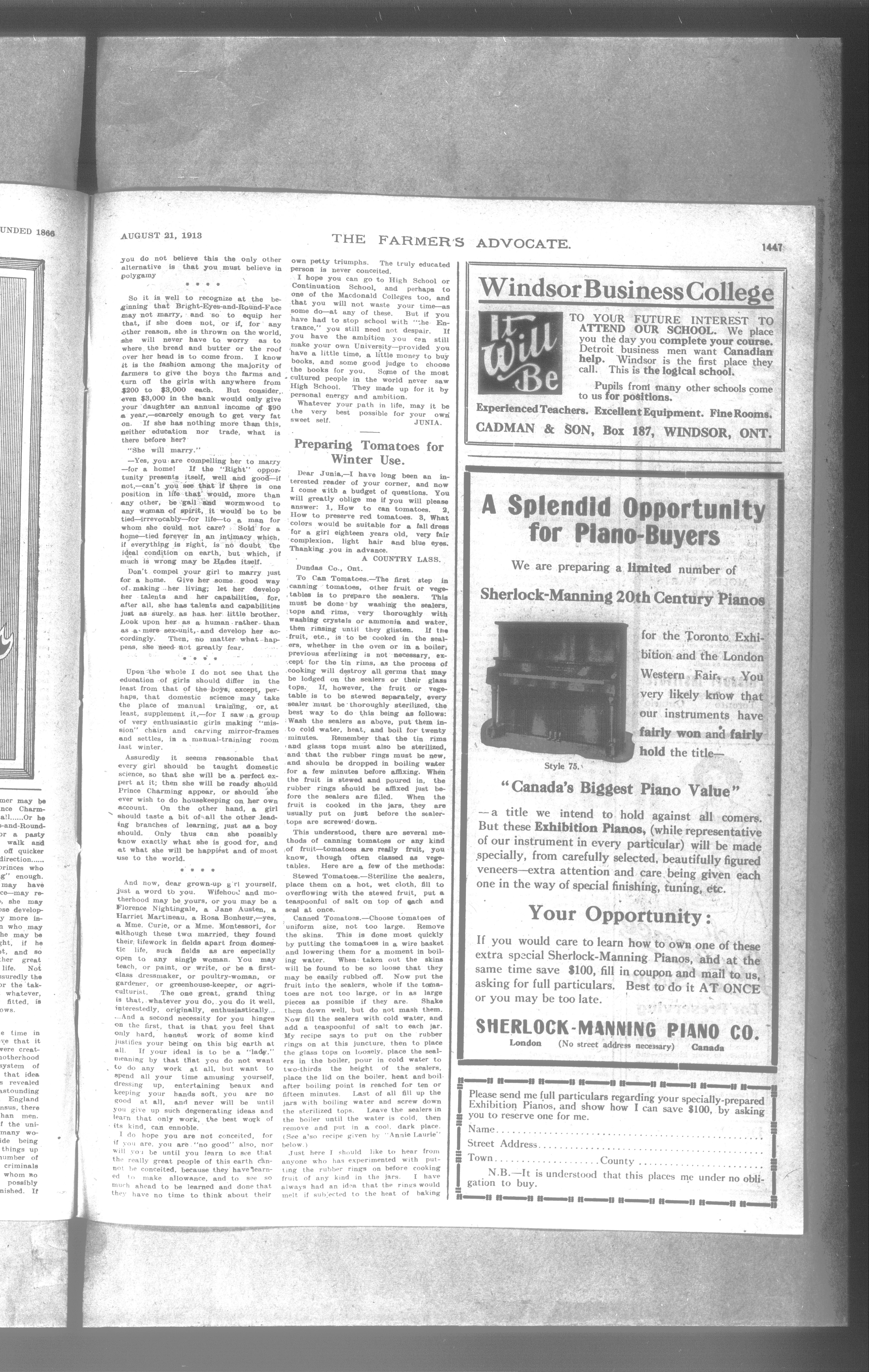 Farmer's Advocate and Home Magazine : Vol. XLVIII, No. 1091 (August 21, 1913)