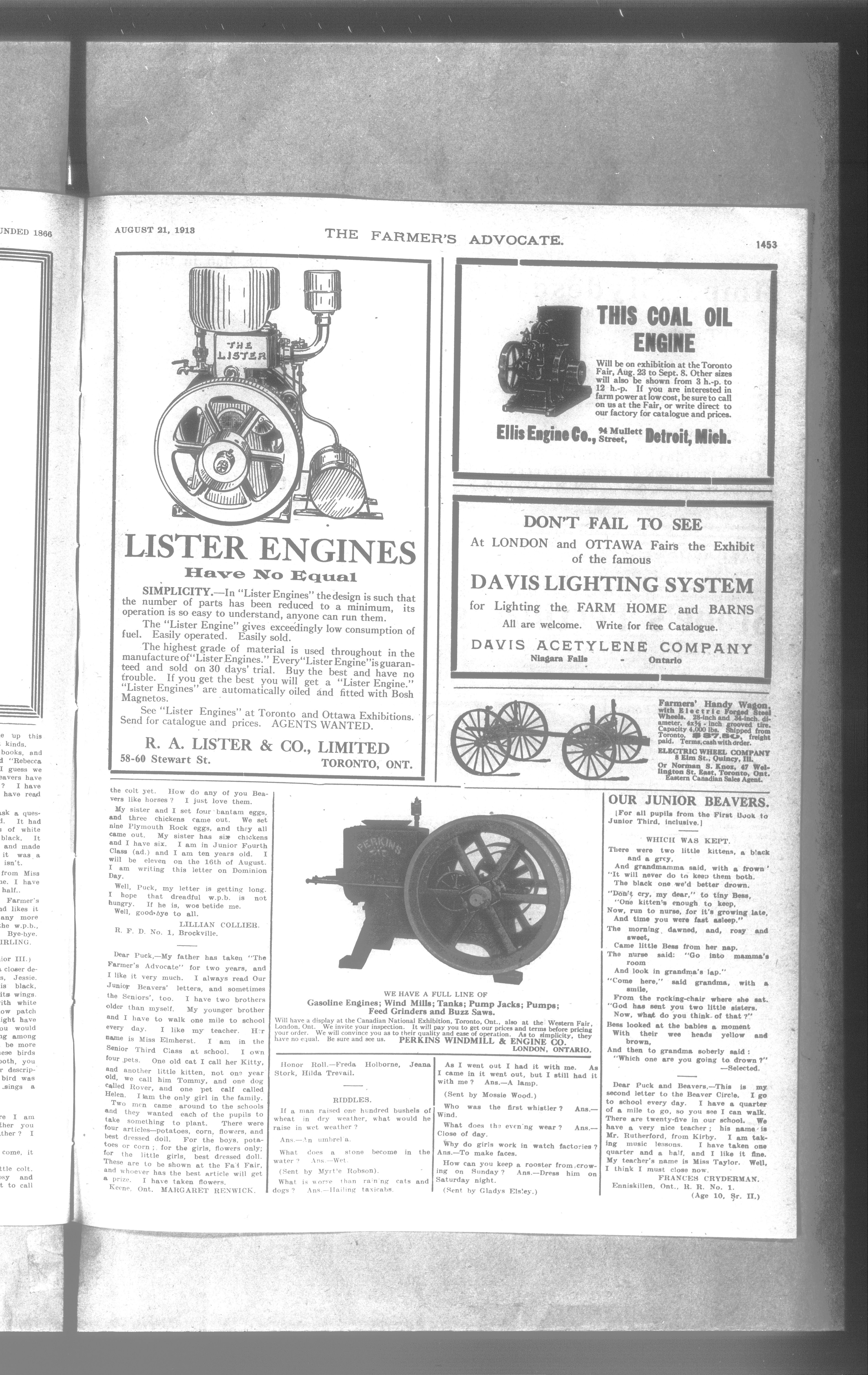 Farmer's Advocate and Home Magazine : Vol. XLVIII, No. 1091 (August 21, 1913)
