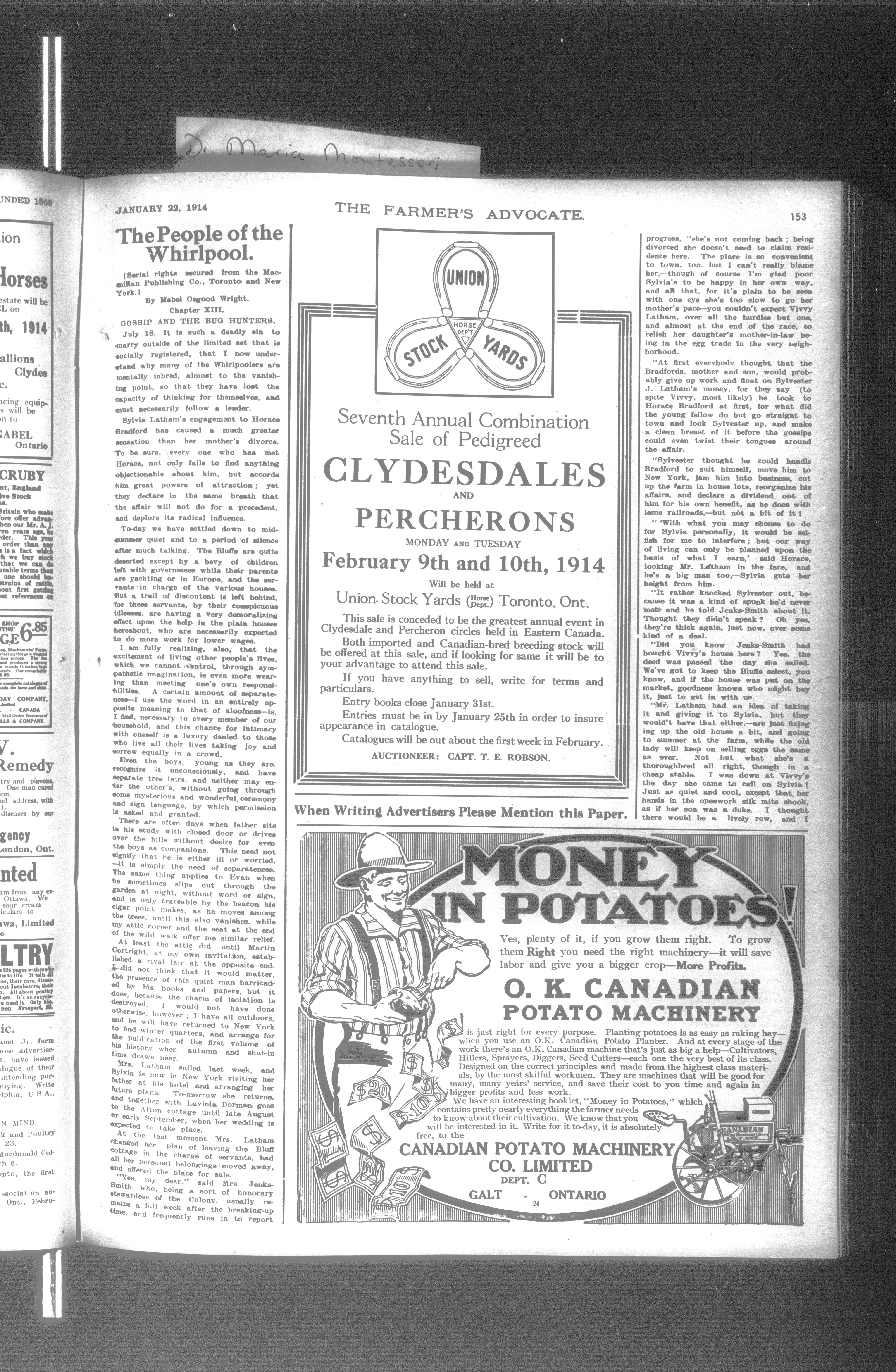 Farmer's Advocate and Home Magazine : Vol. XLIX, No. 1086 [i.e. 1113] (January 22, 1914)