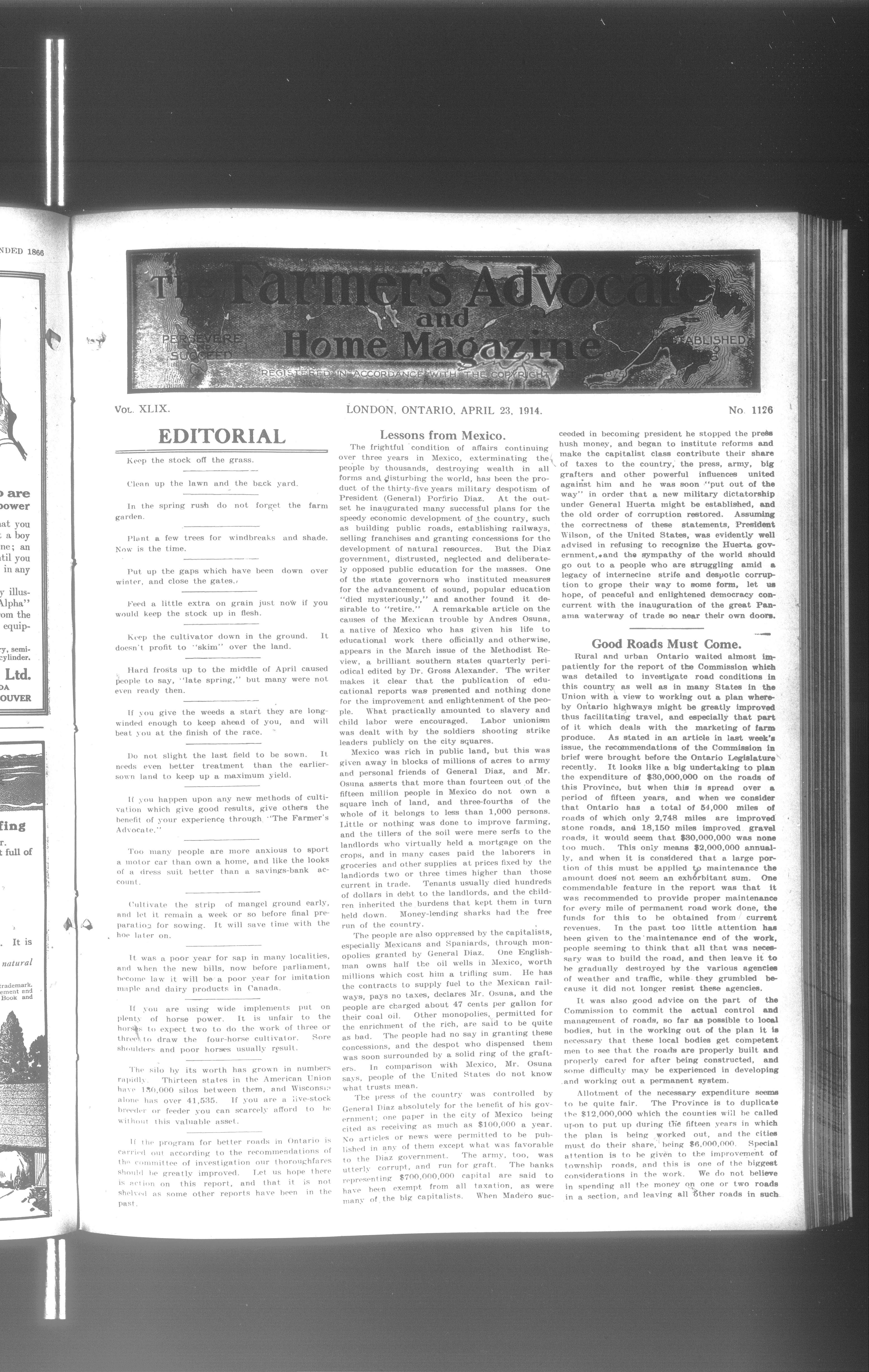 Farmer's Advocate and Home Magazine : Vol. XLIX, No. 1126 (April 23, 1914)