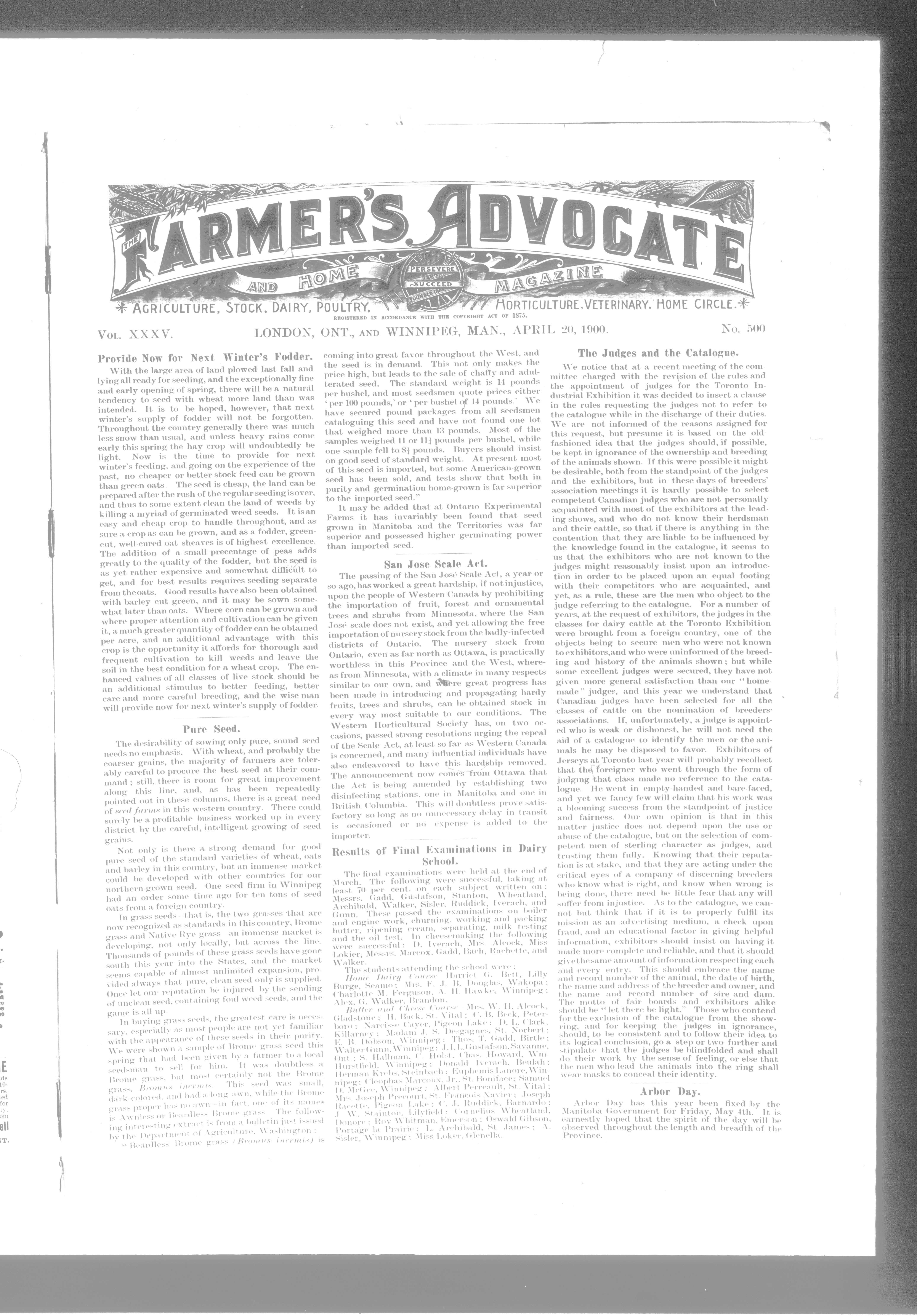 Farmer's advocate and home magazine : Vol. XXXV. No. 500 (April 20, 1900.)