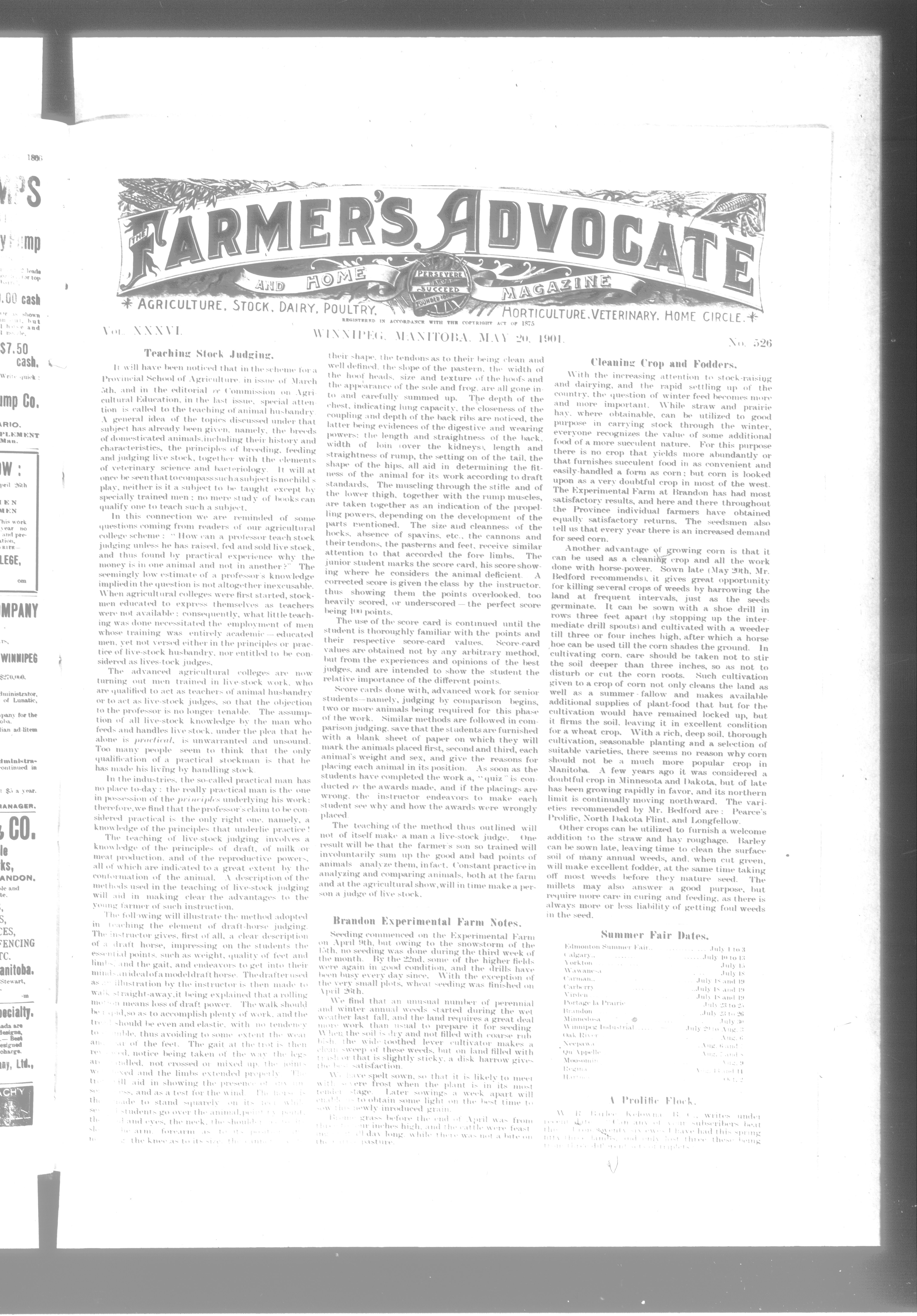 Farmer's advocate and home magazine : Vol. XXXVI. No. 526 (May 20, 1901.)