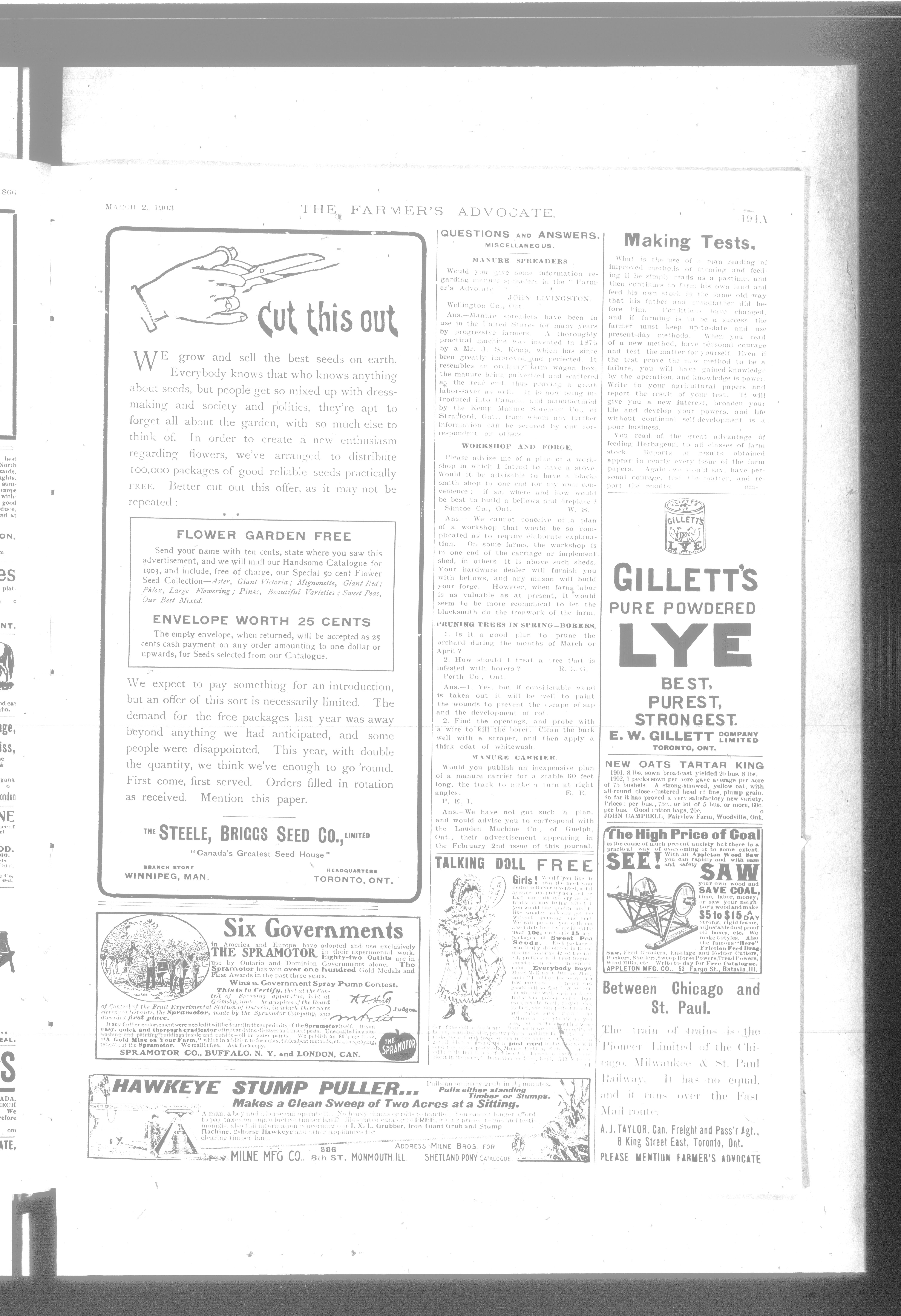 Farmer's advocate and home magazine : Vol. XXXVIII. No. 569 (March 2, 1903.)