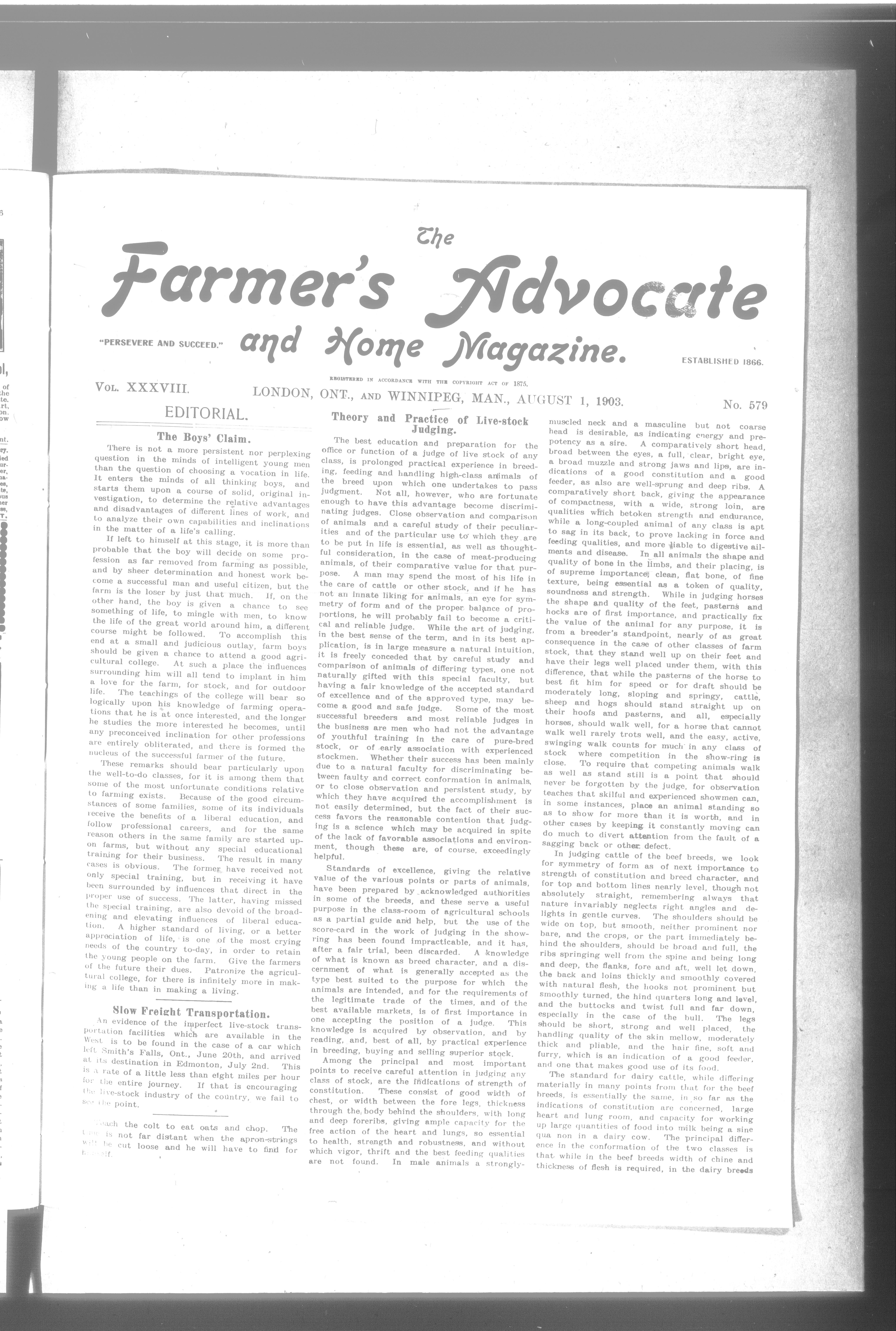 Farmer's advocate and home magazine : Vol. XXXVIII. No. 579 (August 1, 1903.)