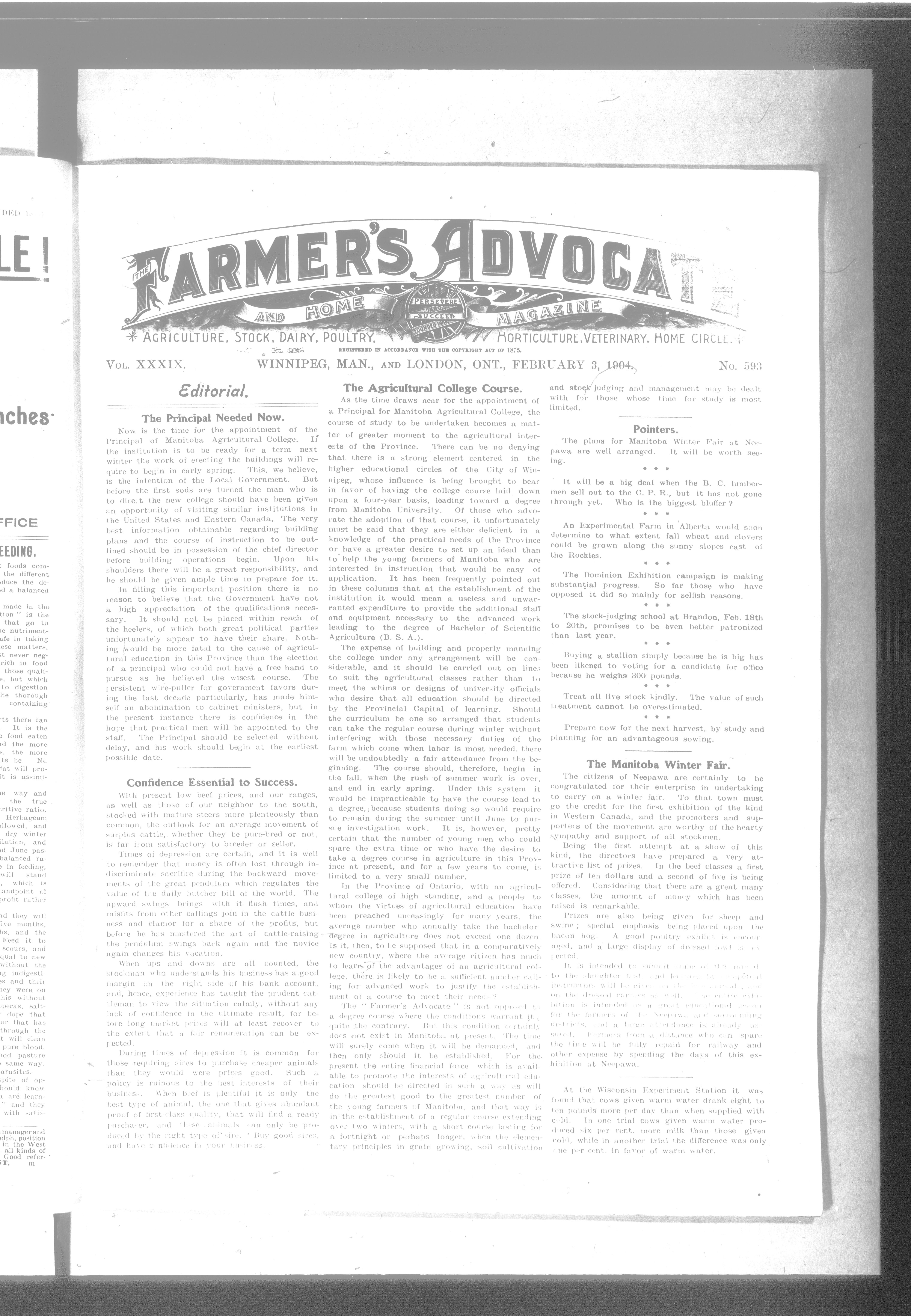 Farmer's advocate and home magazine : Vol. XXXIX. No. 593 (February 3, 1904.)
