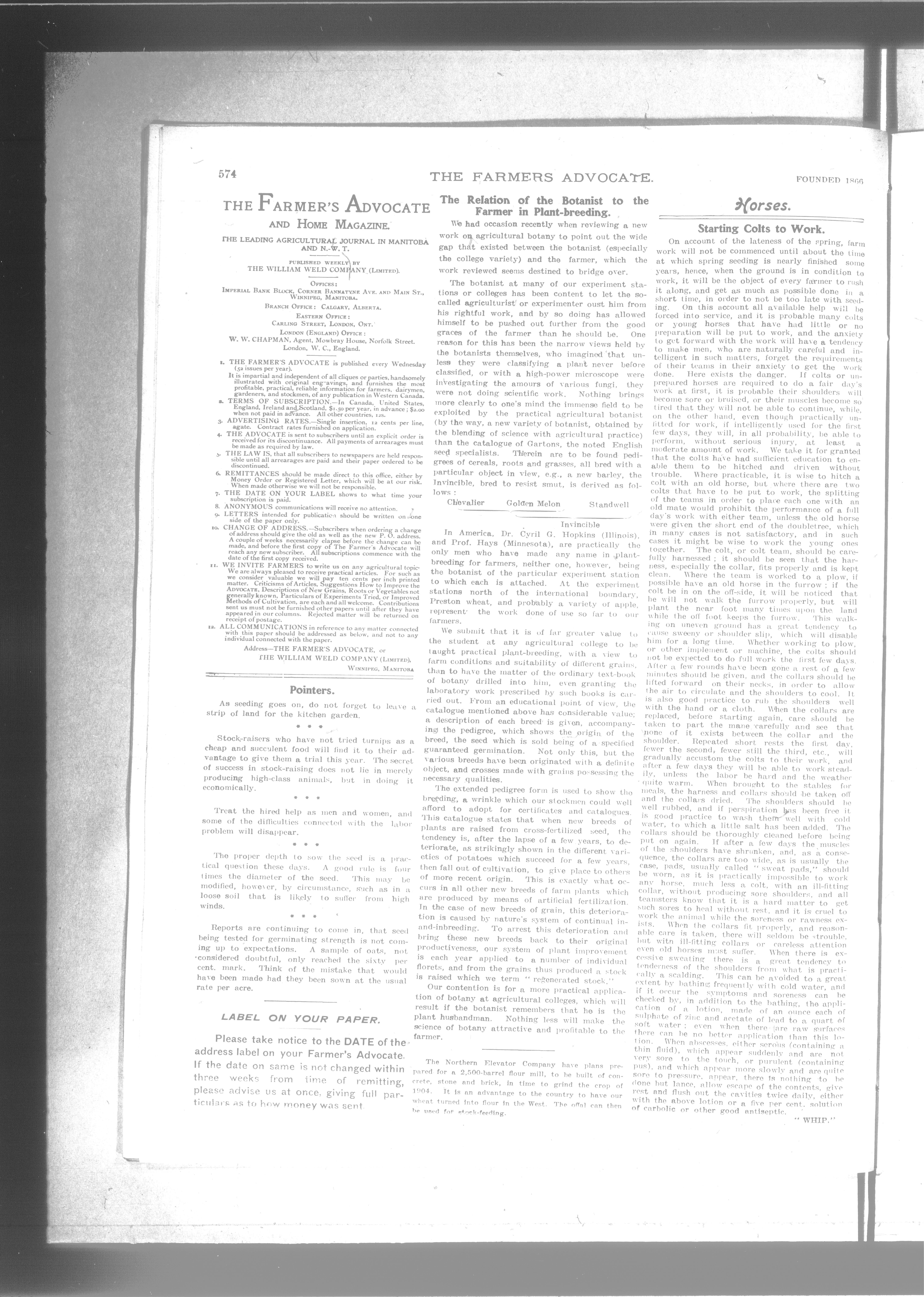 Farmer's advocate and home magazine : Vol. XXXIX. No. 604 (April 20, 1904.)
