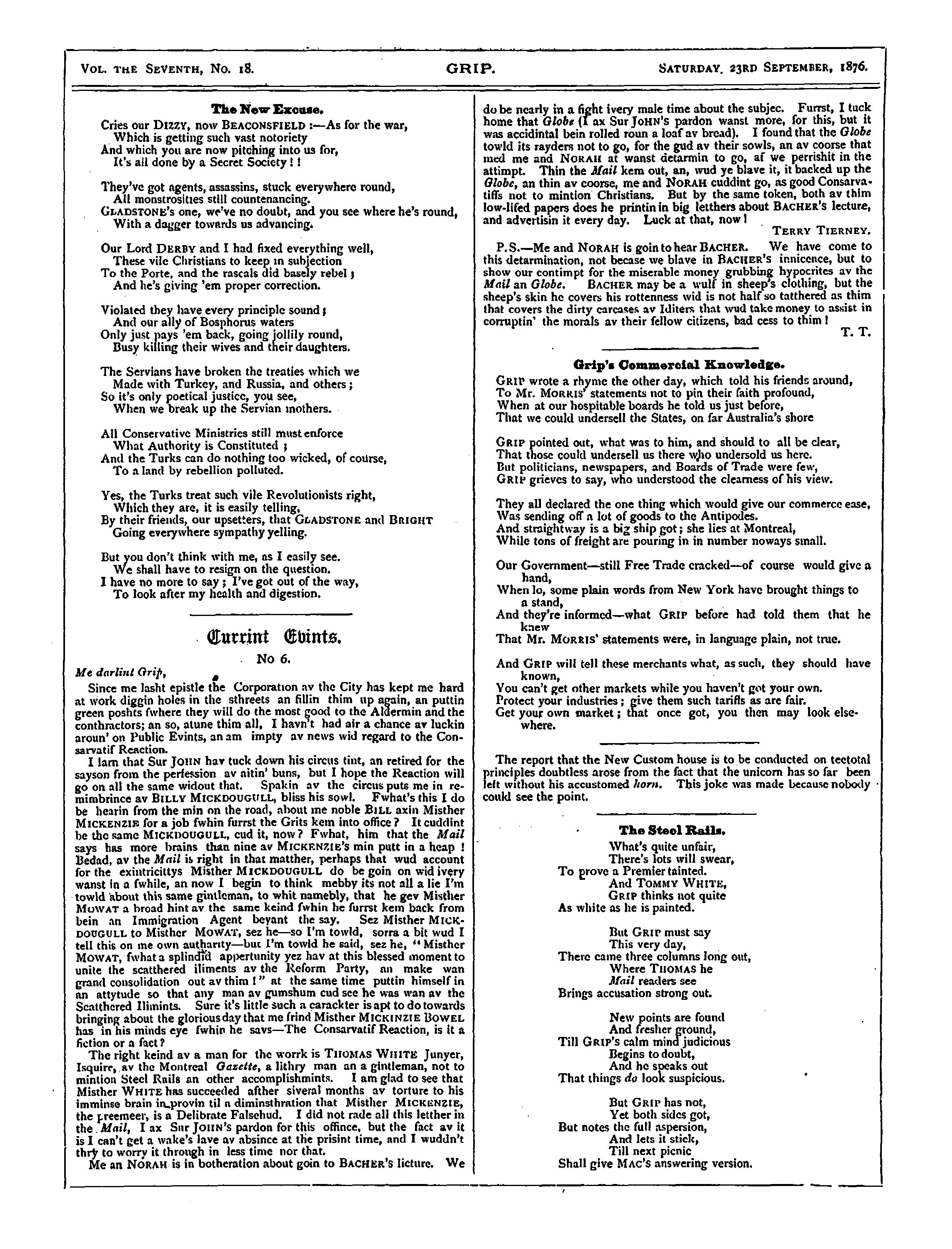- Grip [Vol. 7, no. 18 (Sept. 23, 1876)]