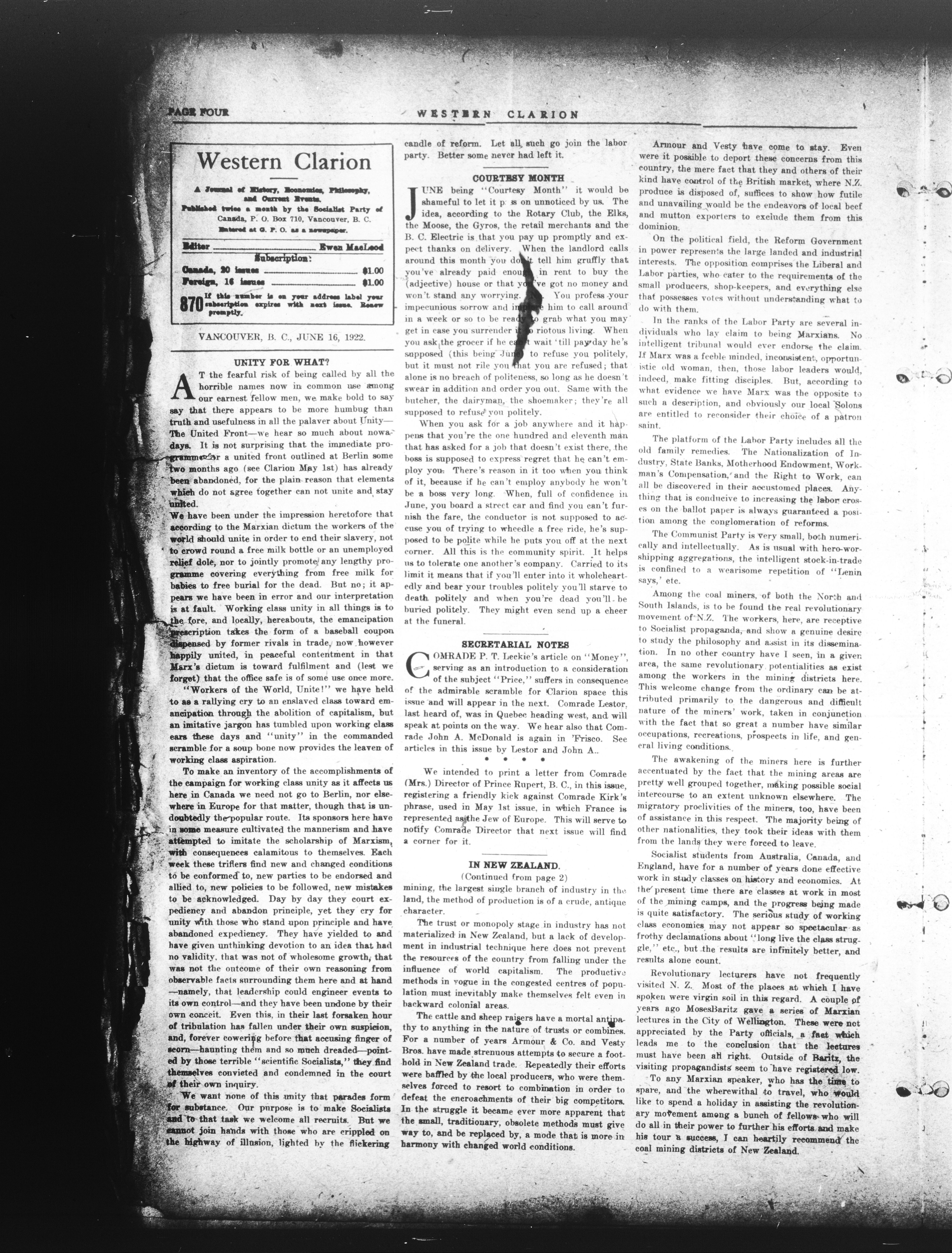 Western clarion : No. 869 (June 16, 1922)