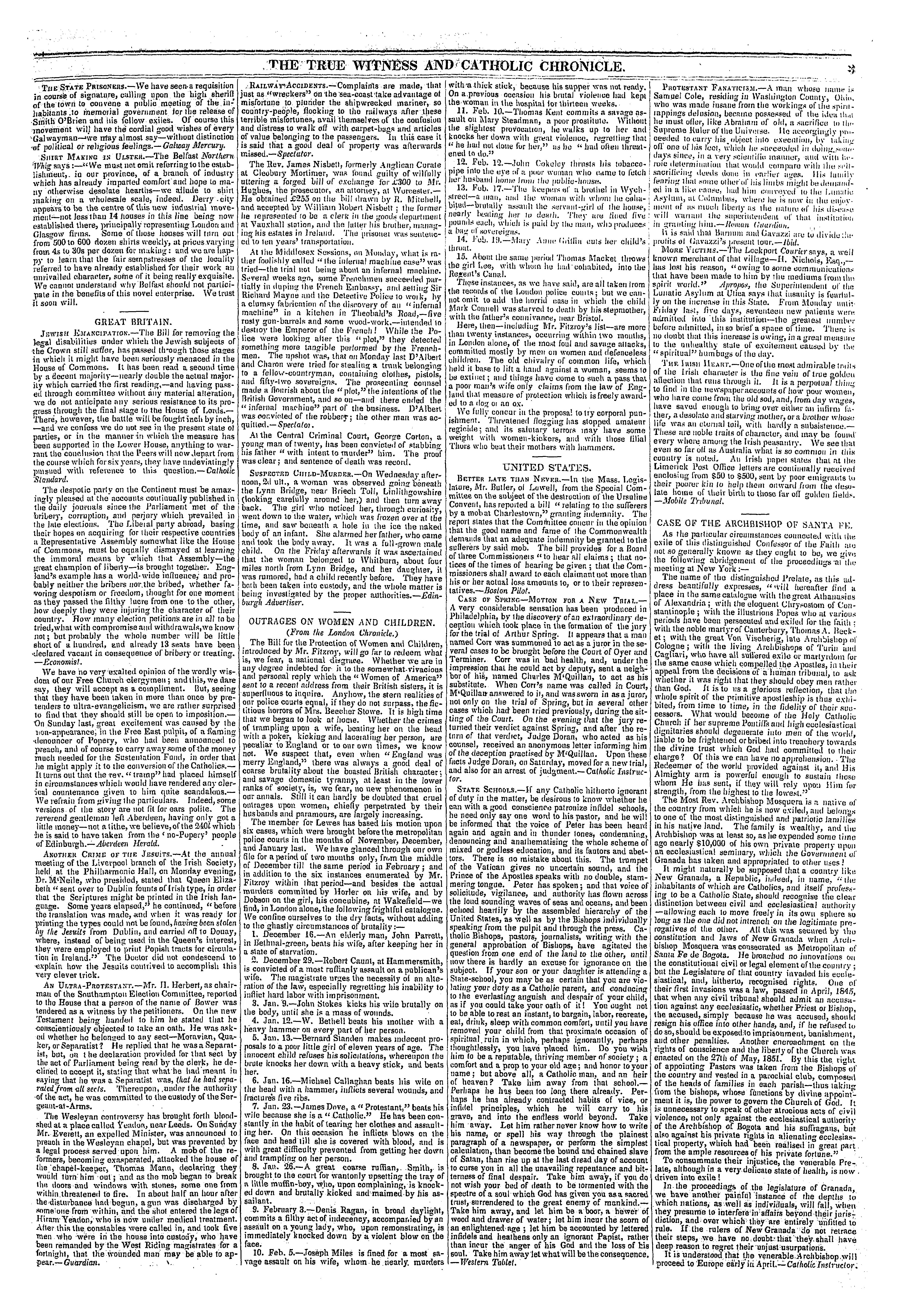 - The true witness and Catholic chronicle [Vol. 3, no. 35 (Apr. 8, 1853)]