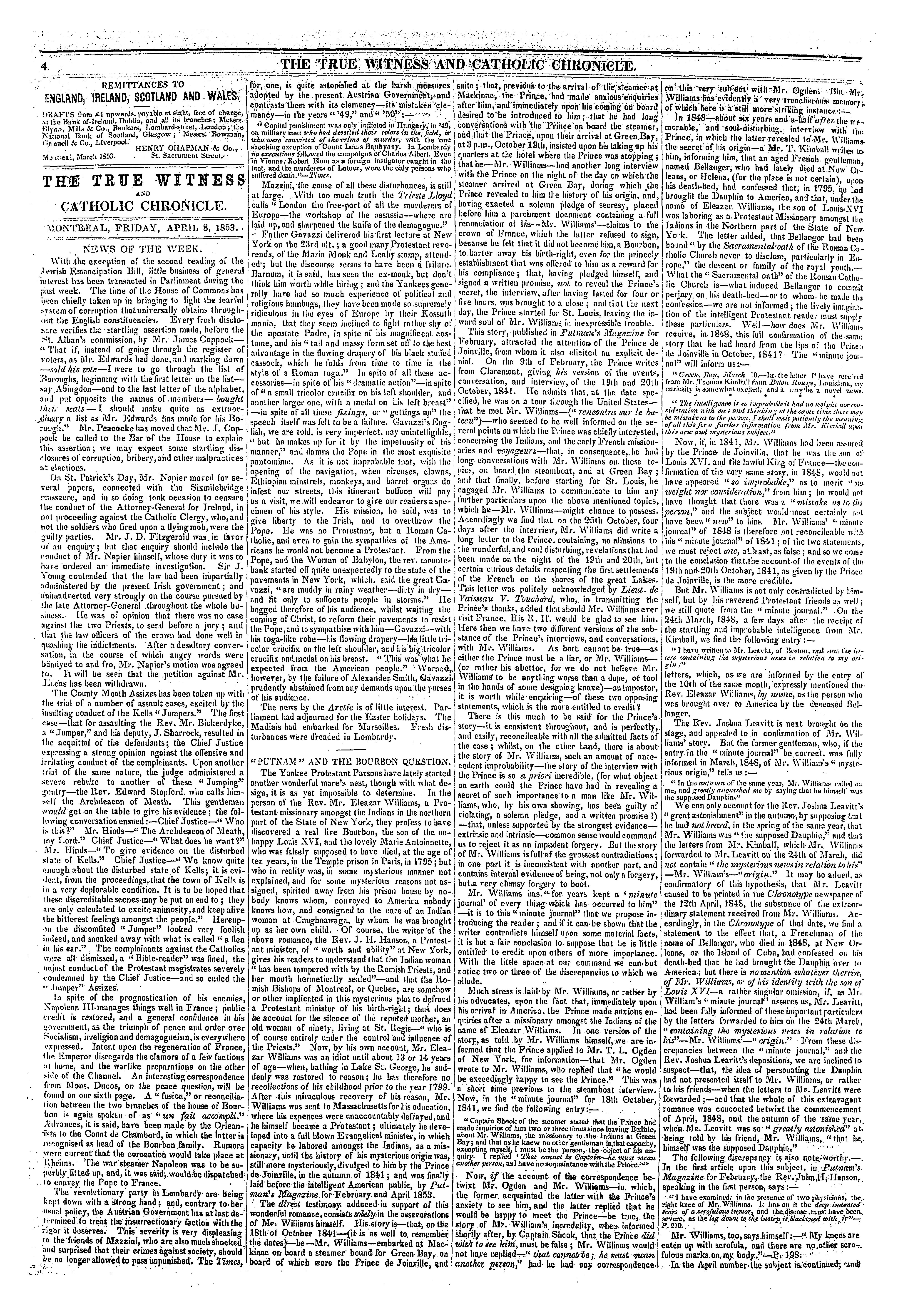 The true witness and Catholic chronicle [Vol. 3, no. 35 (Apr. 8, 1853)]