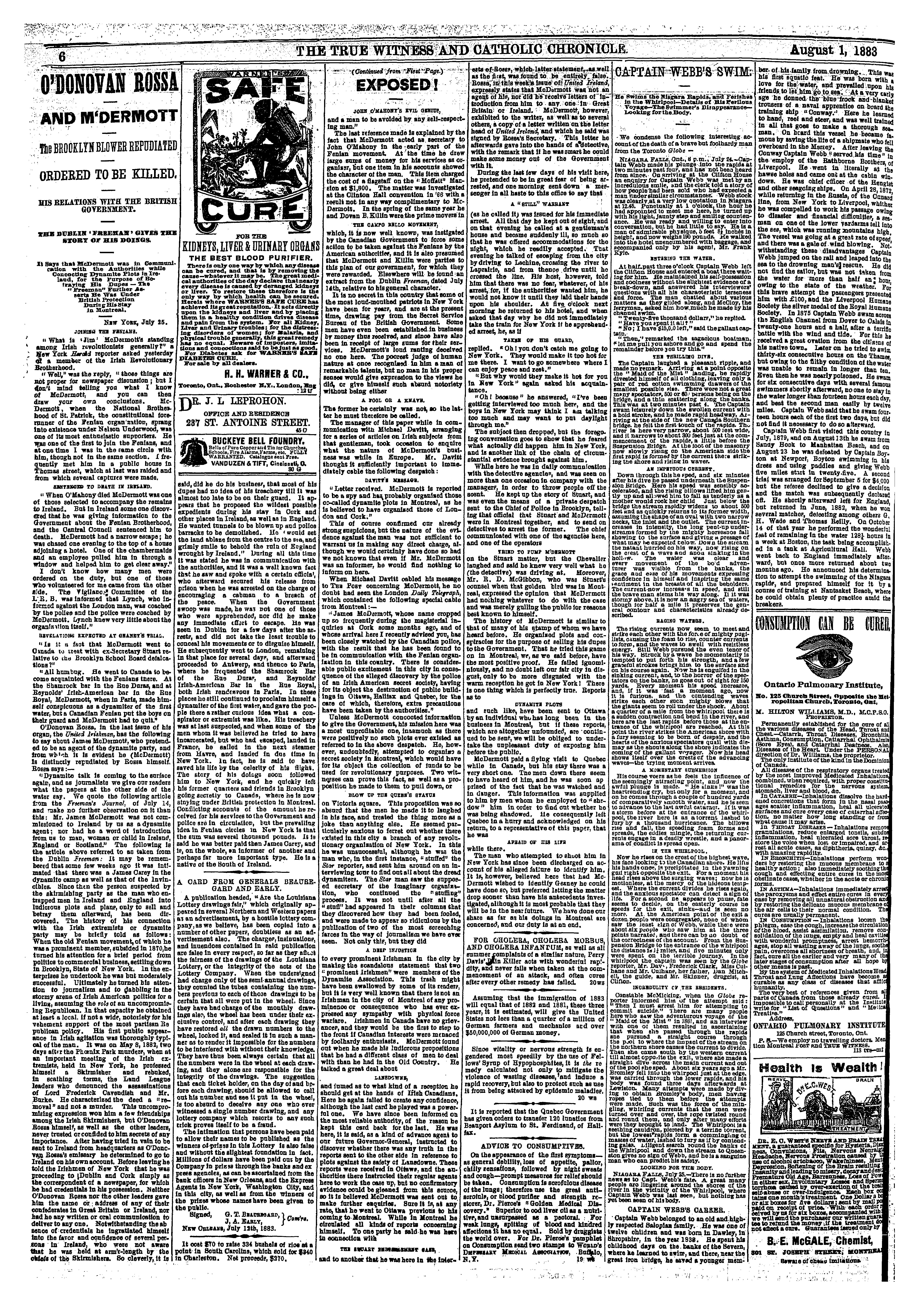 - The true witness and Catholic chronicle [Vol. 33, no. 51 (Aug. 1, 1883)]
