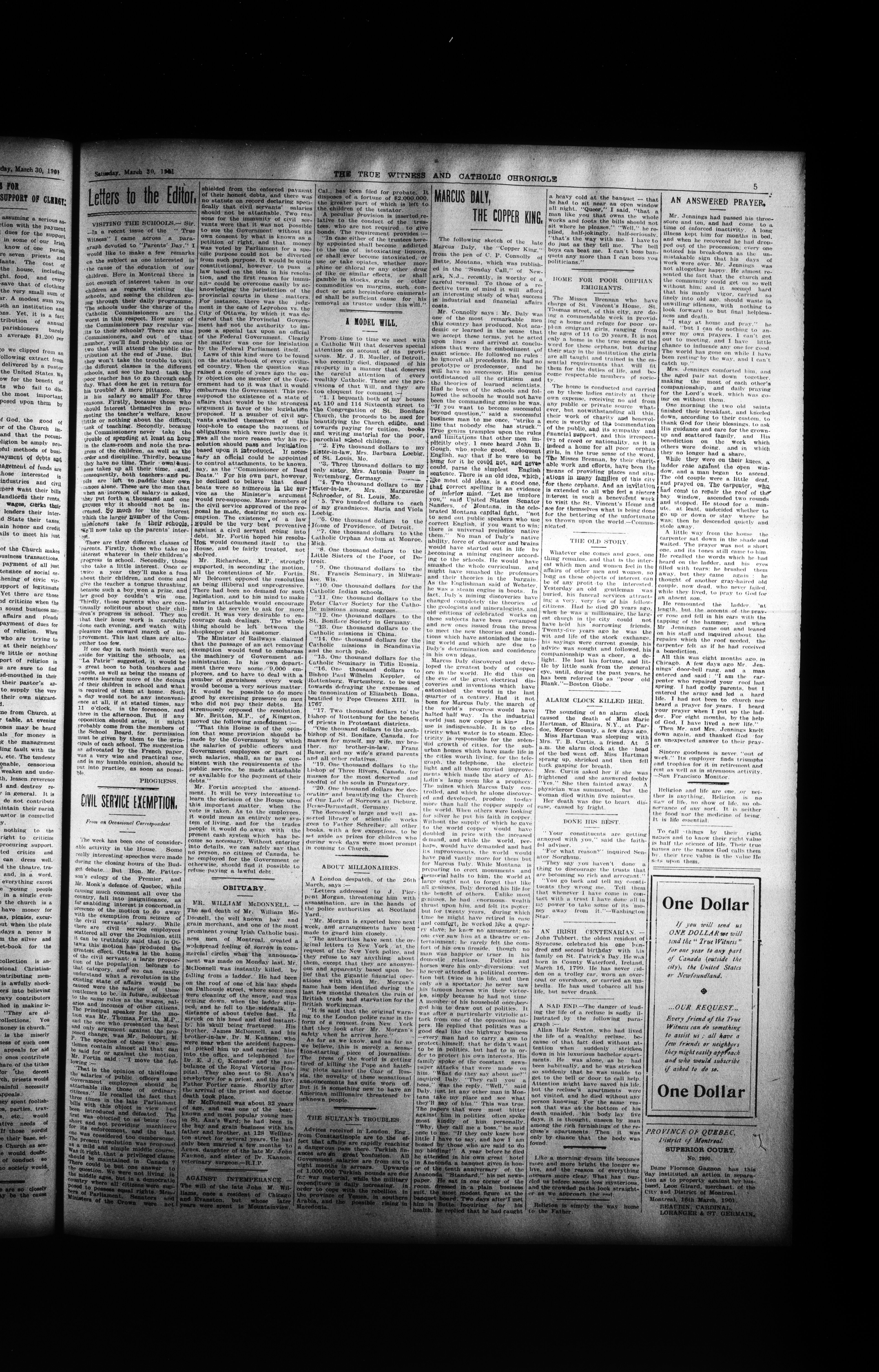The true witness and Catholic chronicle : Vol. L, No. 38 (March 30, 1901)