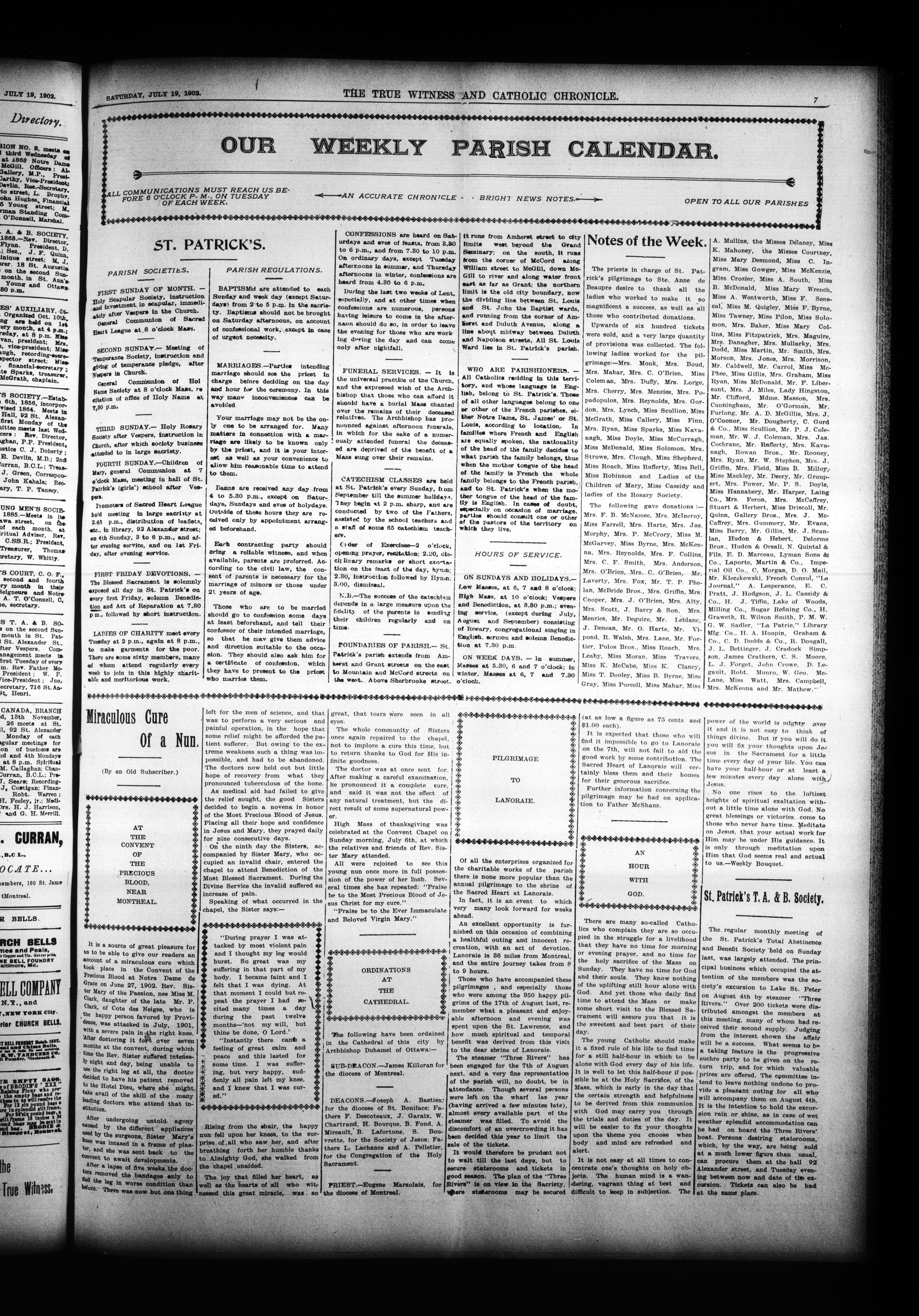 The true witness and Catholic chronicle : Vol. LII, No. 2 (July 19, 1902)