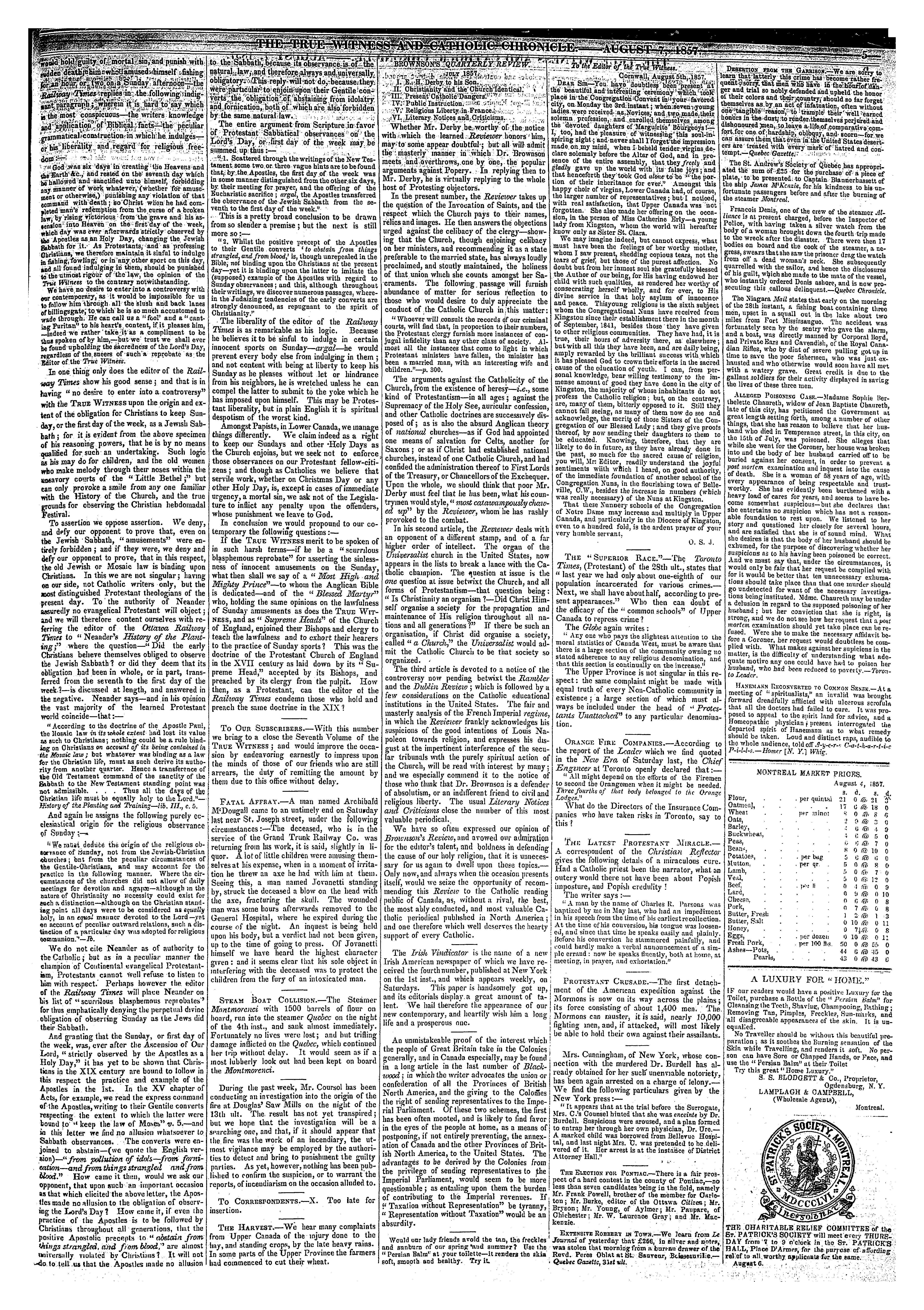 - The true witness and Catholic chronicle [Vol. 7, no. 52 (Aug. 7, 1857)]