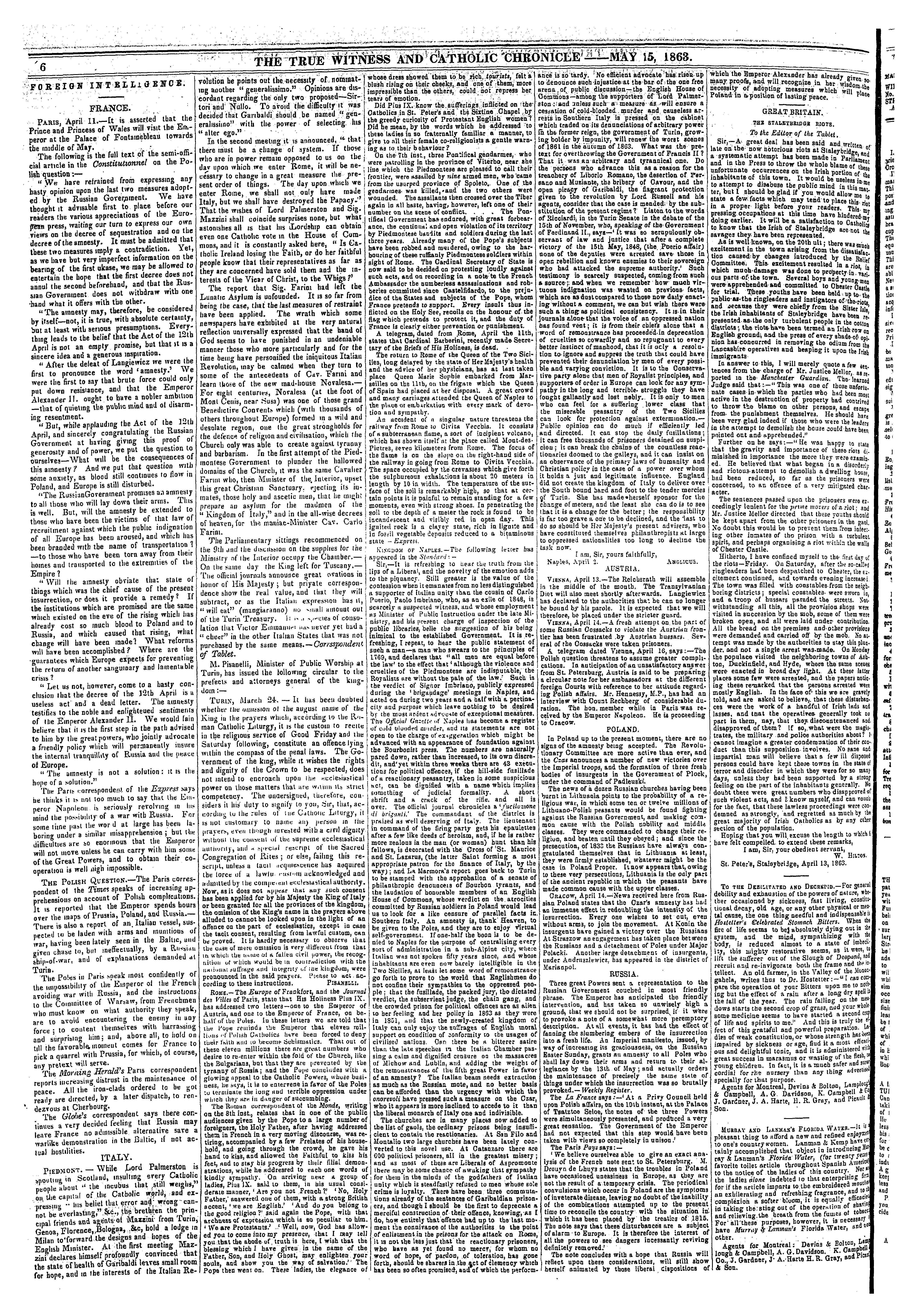 The true witness and Catholic chronicle [Vol. 13, no. 40 (May 15, 1863)]