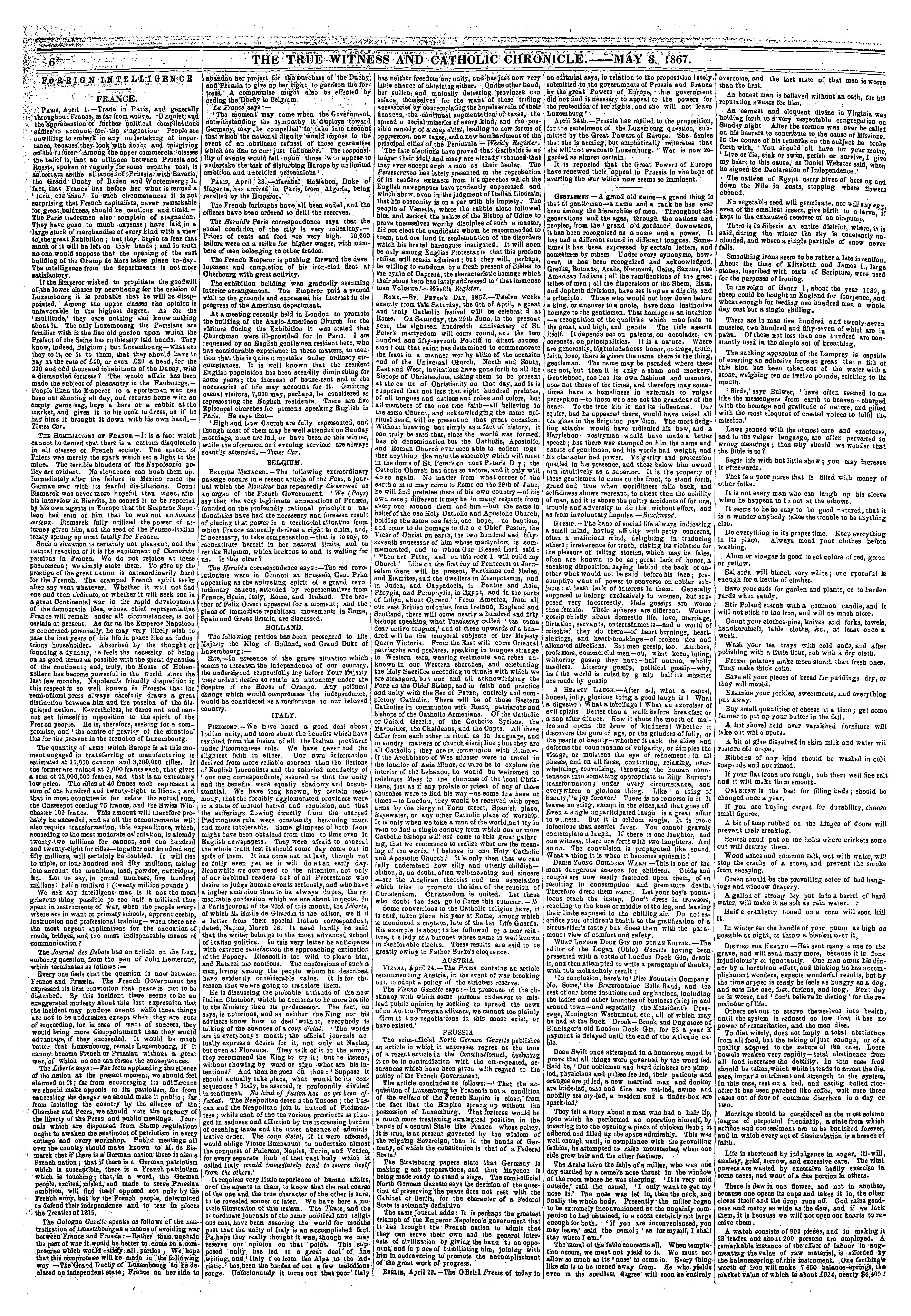 - The true witness and Catholic chronicle [Vol. 17, no. 39 (May 3, 1867)]