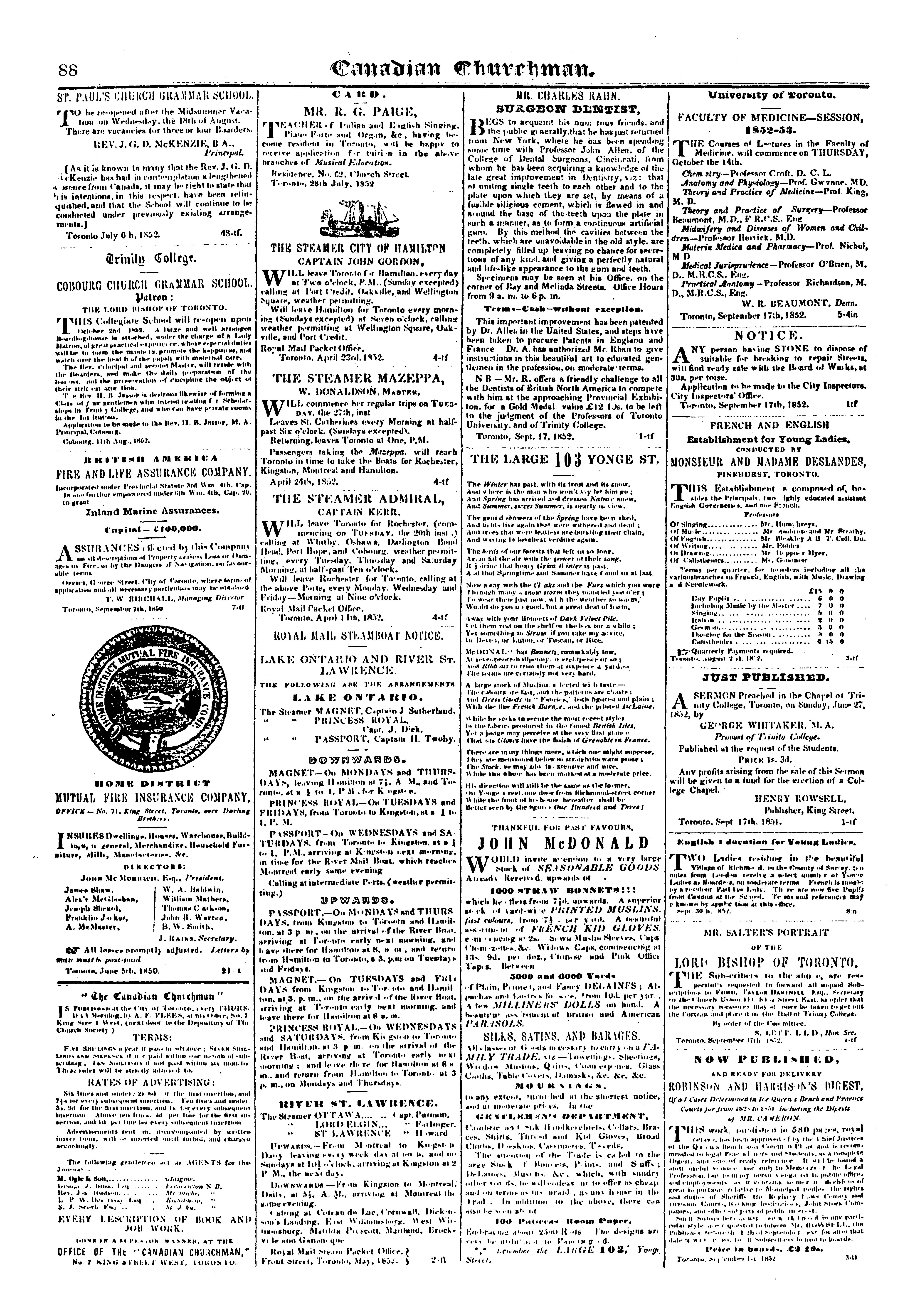 The Canadian churchman : New ser. v. 1, no. 11 (Oct. 14, 1852)