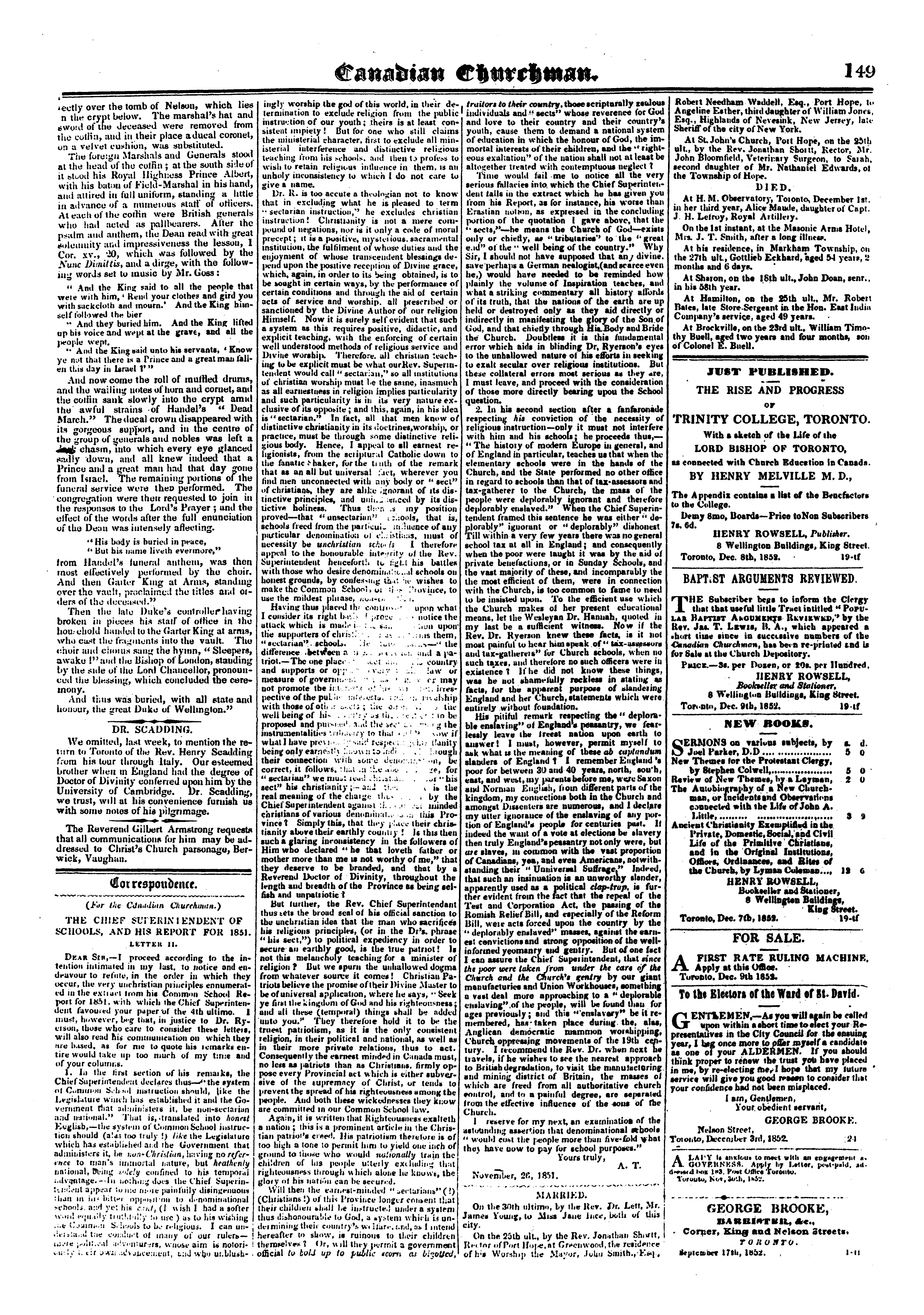 The Canadian churchman : New ser. v. 1, no. 19 (Dec. 9, 1852)