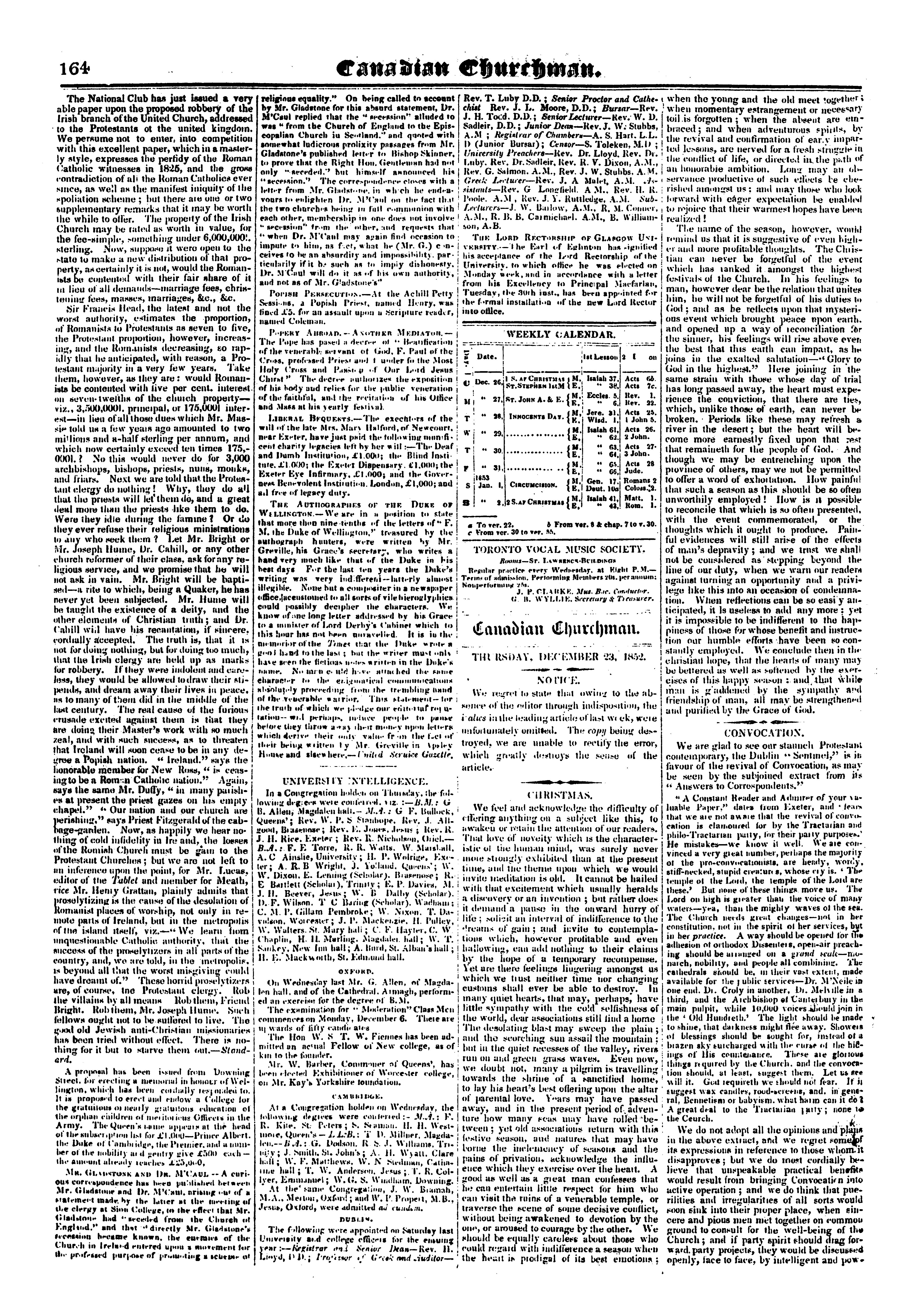 The Canadian churchman : New ser. v. 1, no. 21 (Dec. 23, 1852)