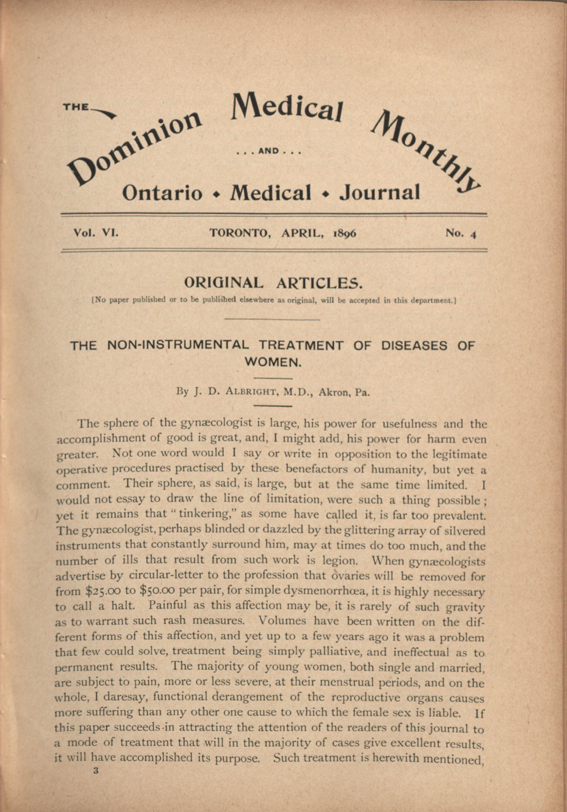 The Dominion medical monthly and Ontario medical journal : Vol. 6, no. 4 (Apr. 1896)