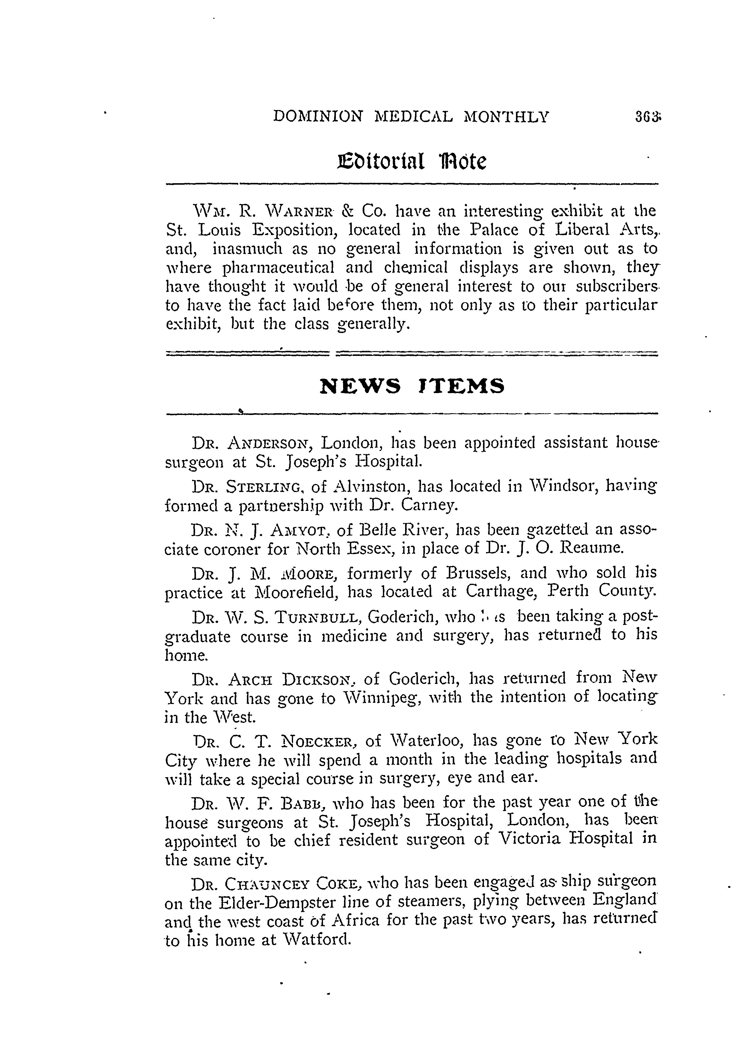 The Dominion medical monthly and Ontario medical journal : Vol. 22, no. 6 (June 1904)