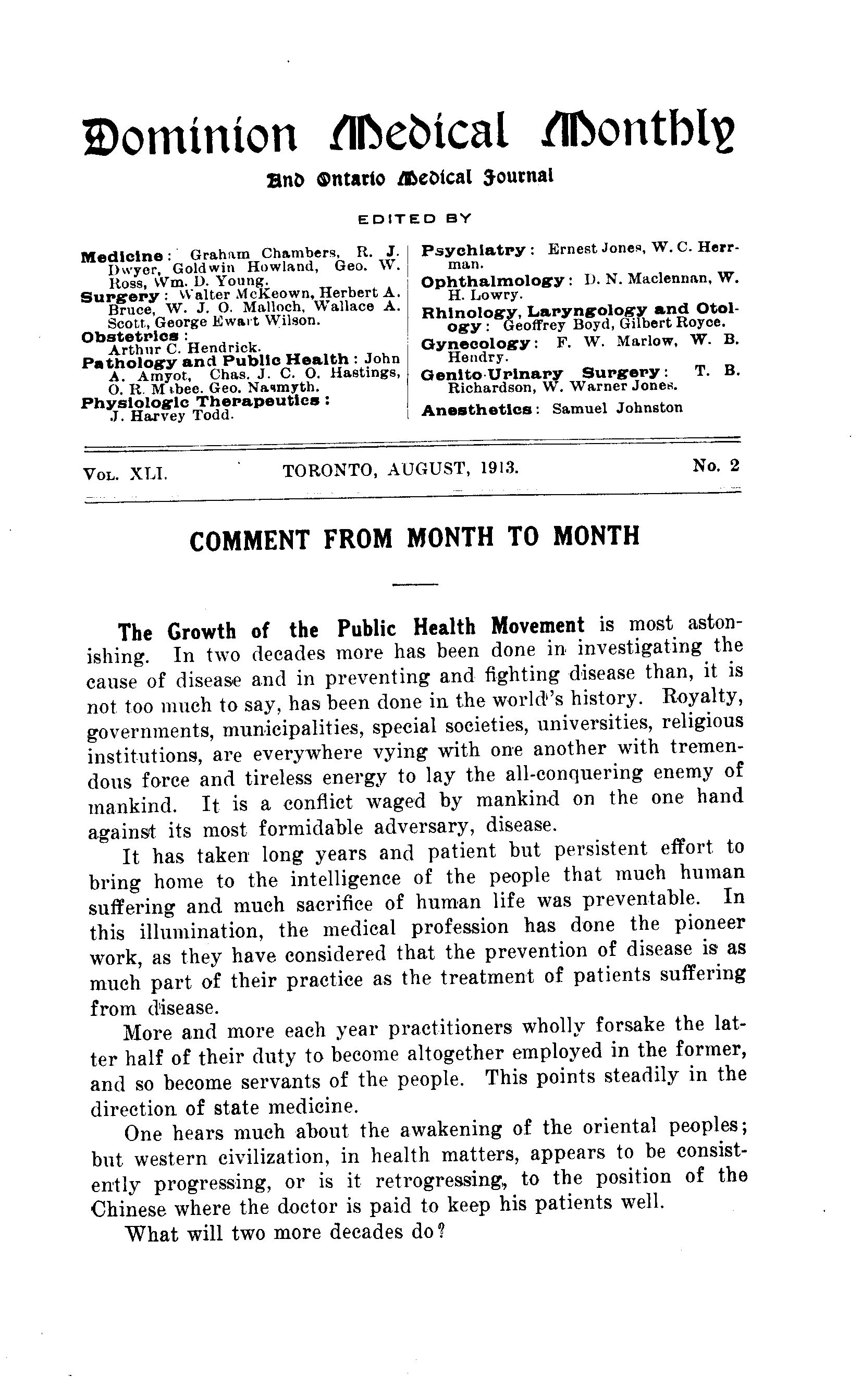 The Dominion medical monthly and Ontario medical journal : Vol. 41, no. 2 (Aug. 1913)