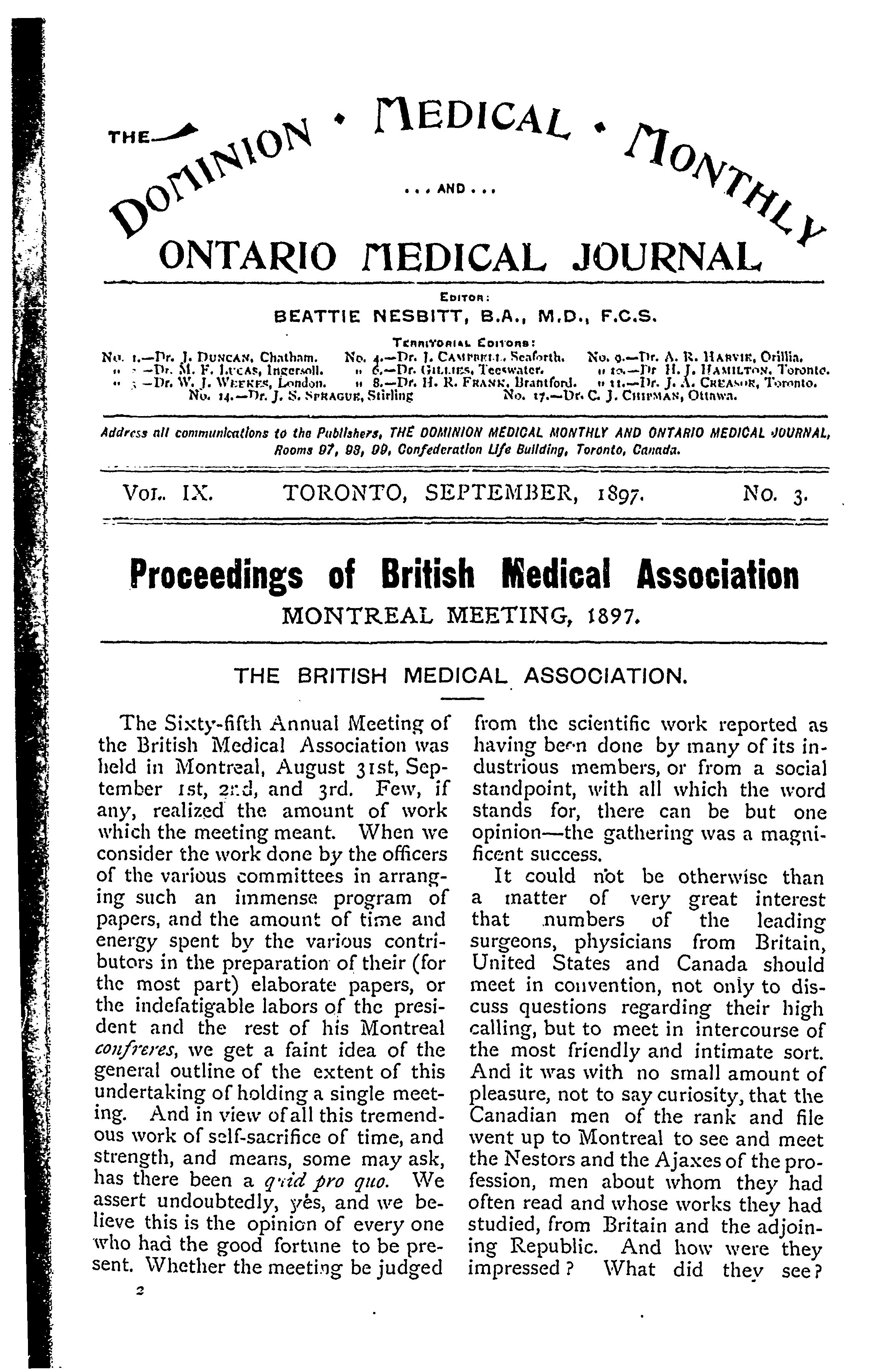 The Dominion medical monthly and Ontario medical journal : Vol. 9, no. 3 (Sept. 1897)