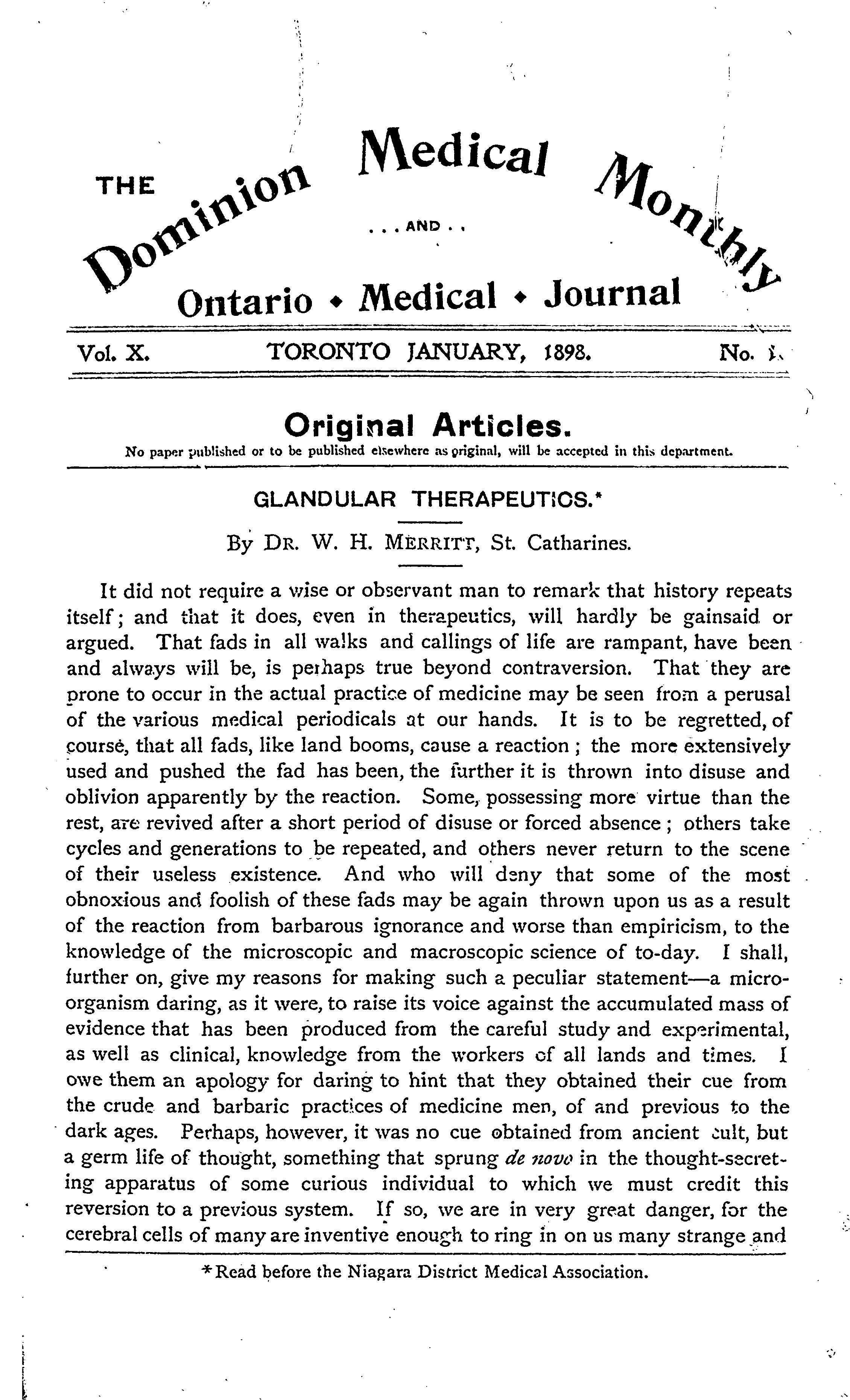 The Dominion medical monthly and Ontario medical journal : Vol. 10, no. 1 (Jan. 1898)