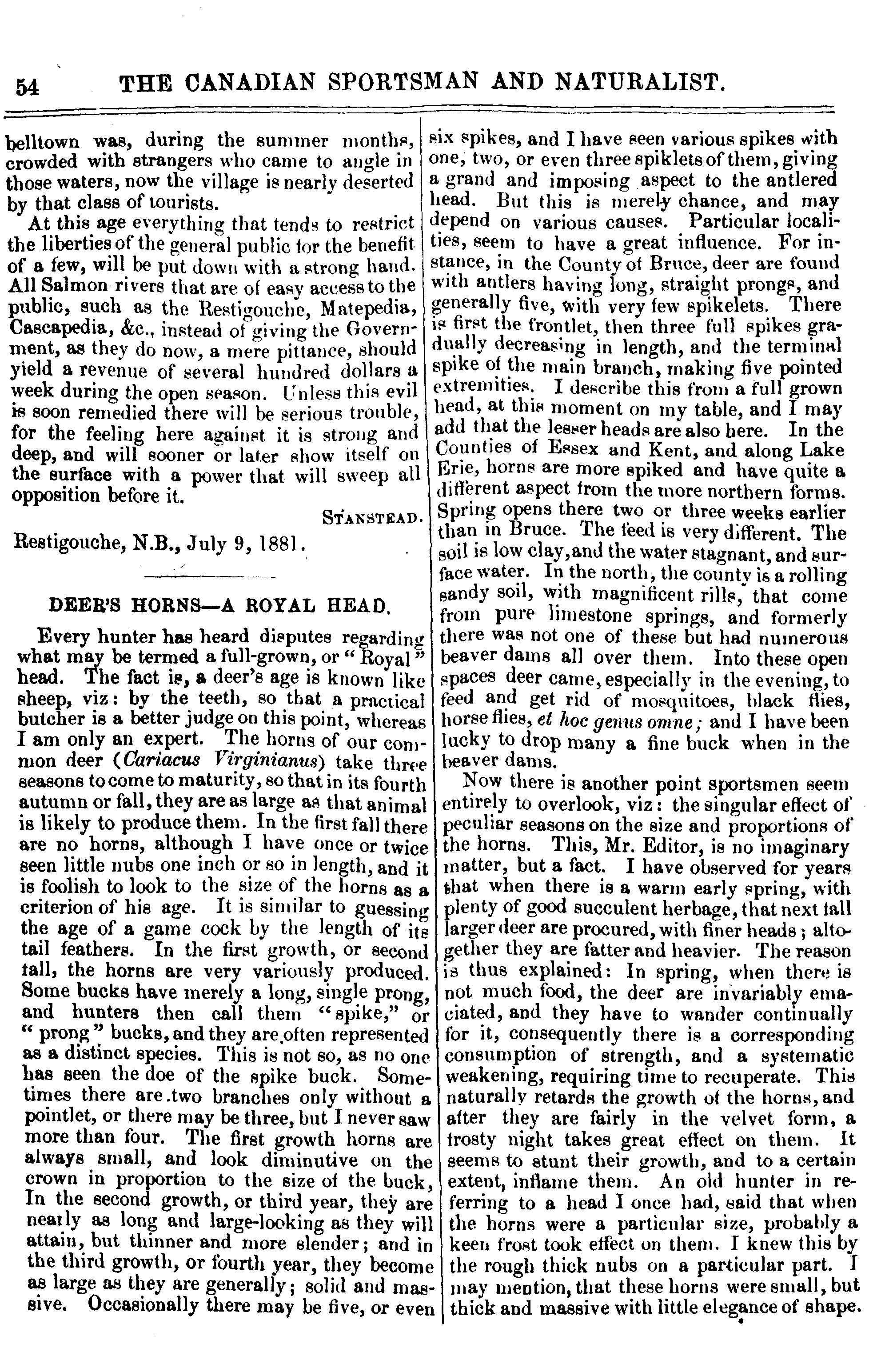 - The Canadian sportsman and naturalist [Vol. 1, no. 7 (July 15, 1881)]