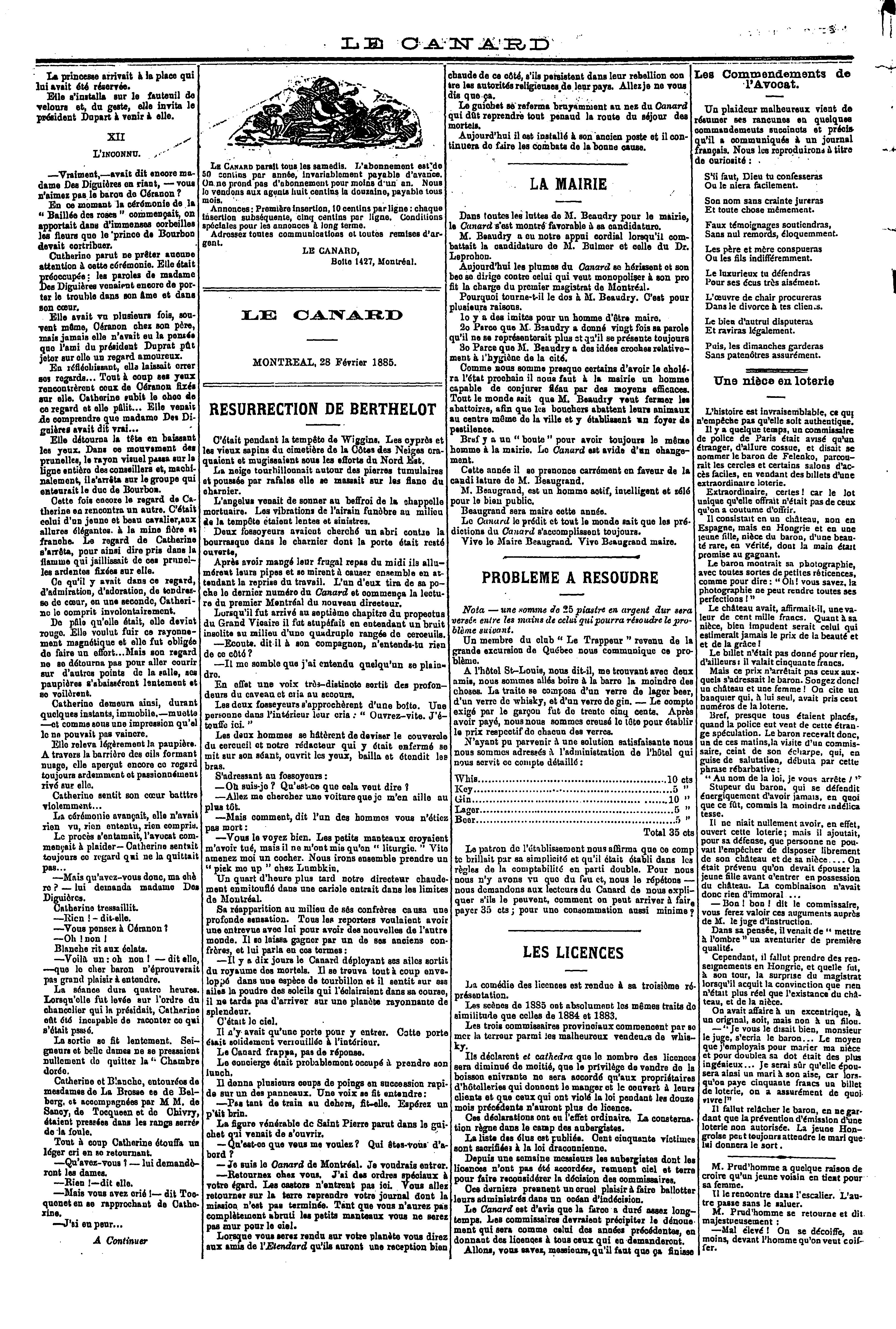 Le canard : [8e année, no 22 (28 févr. 1885)]