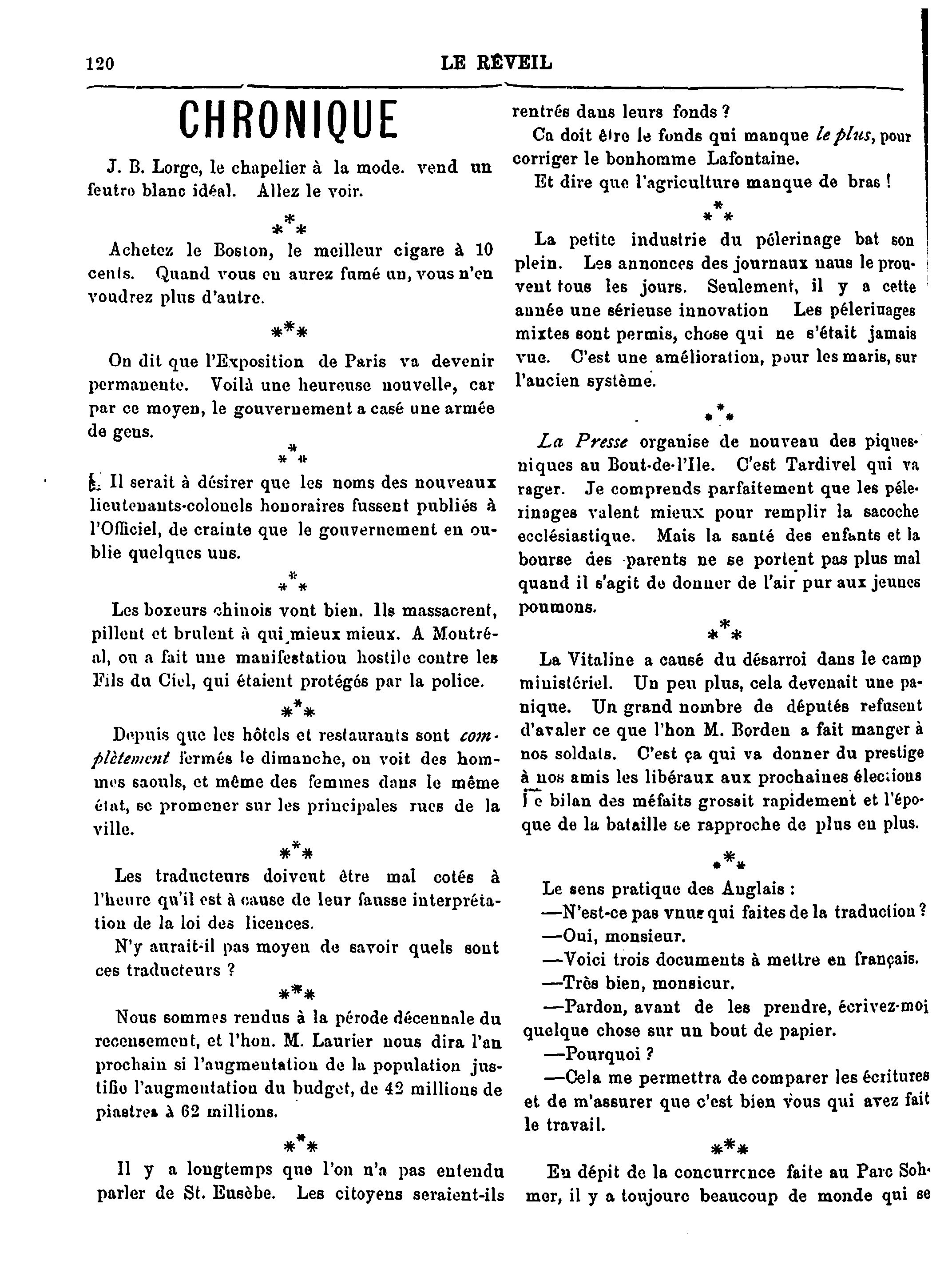 - Le réveil [Vol. 12, no 258 (30 juin 1900)]