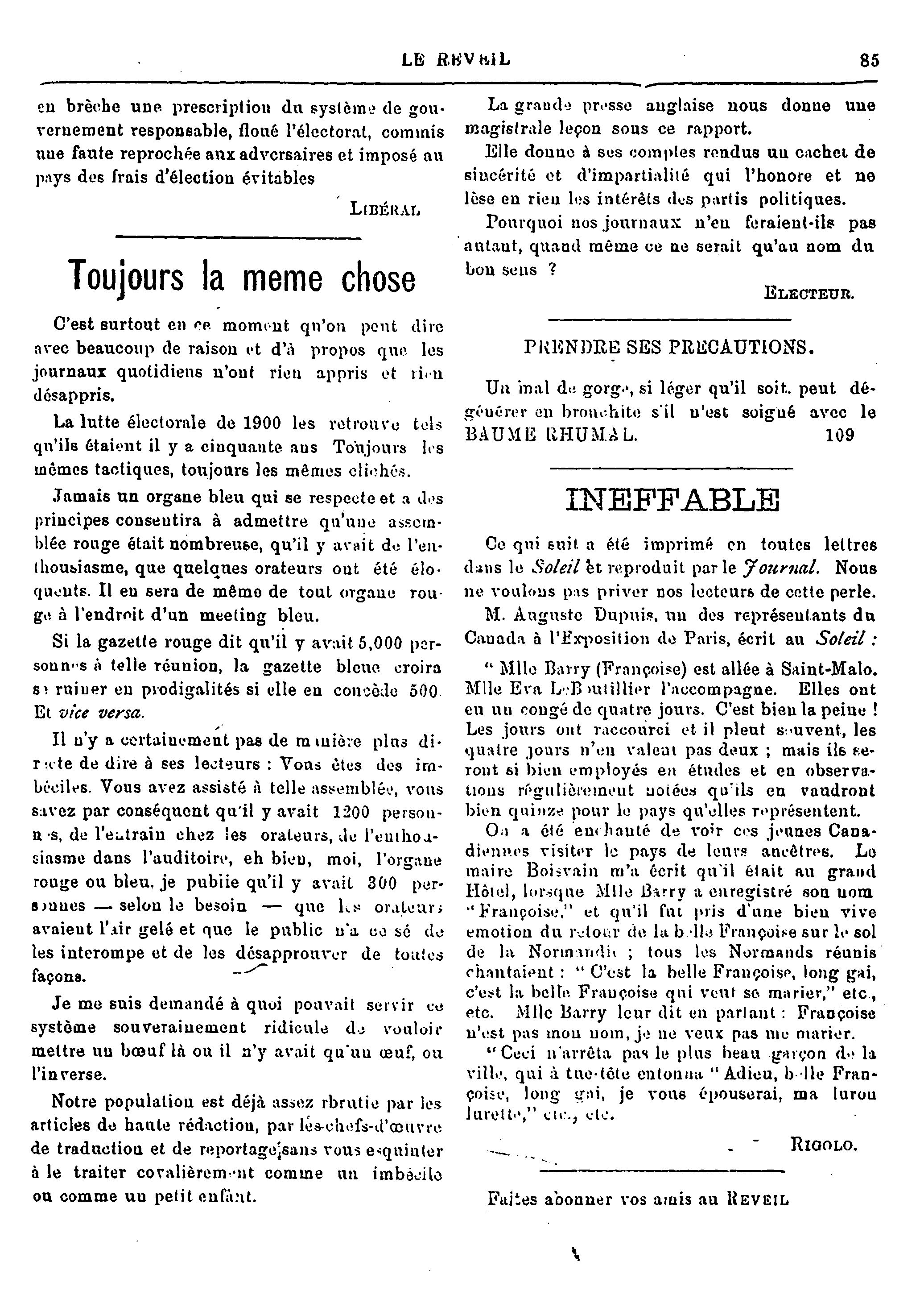 Le réveil : [Vol. 13, no 270 (23 oct. 1900)]