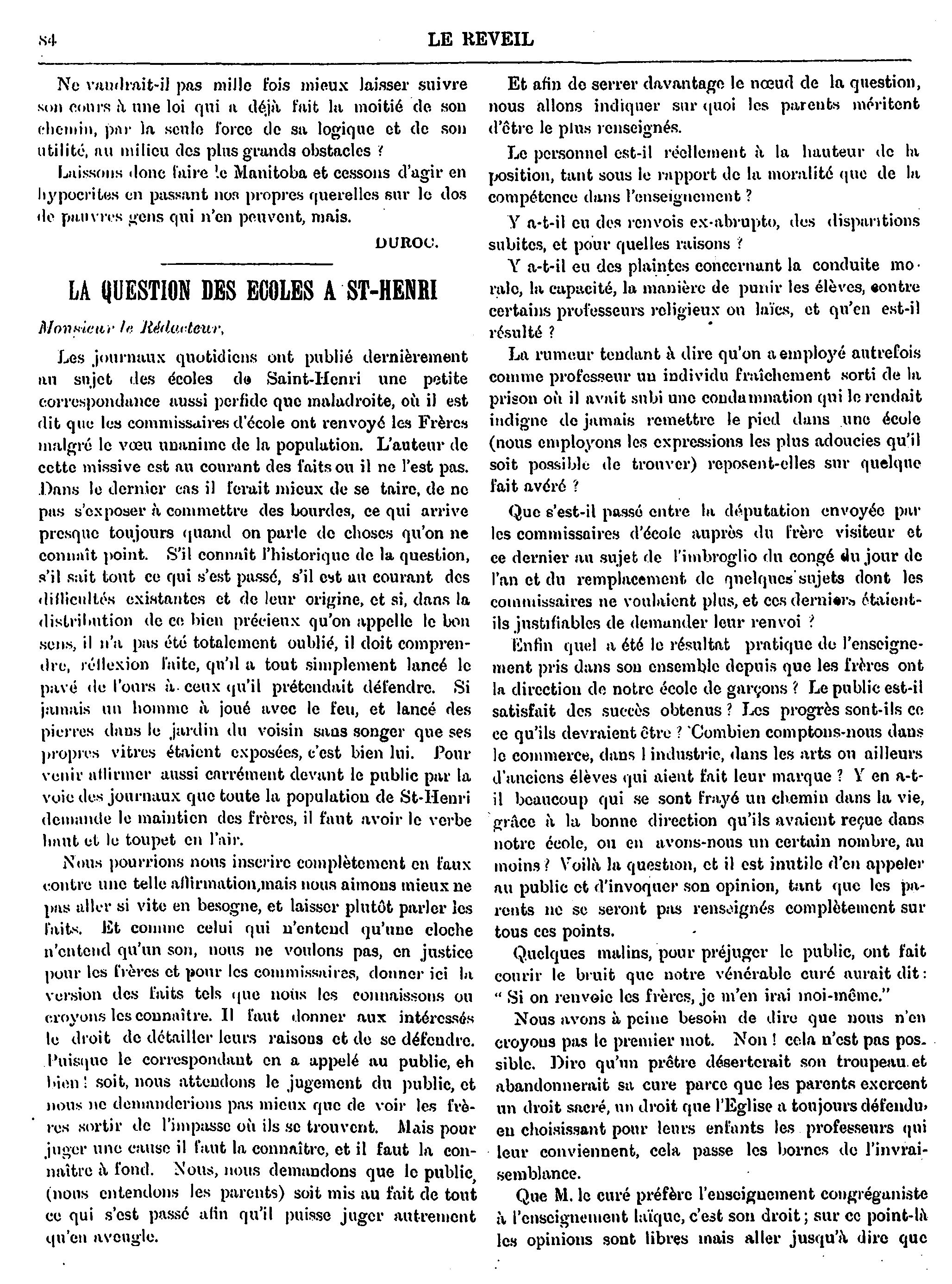 Le réveil : [Vol. 2, no 31 (6 avril 1895)]