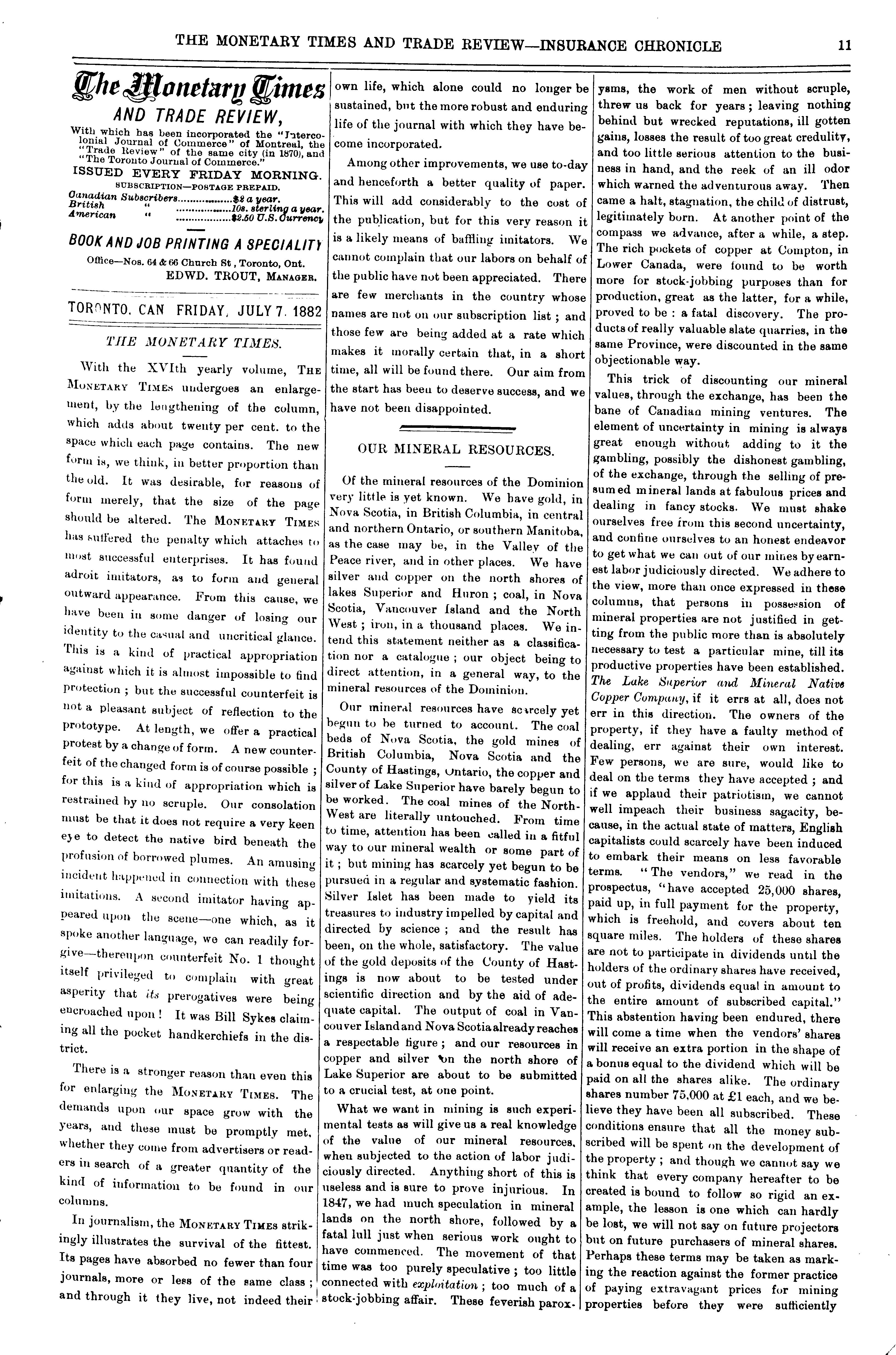 The monetary times, trade review and insurance chronicle : [Vol. 16, no. 1 (July 7, 1882)]