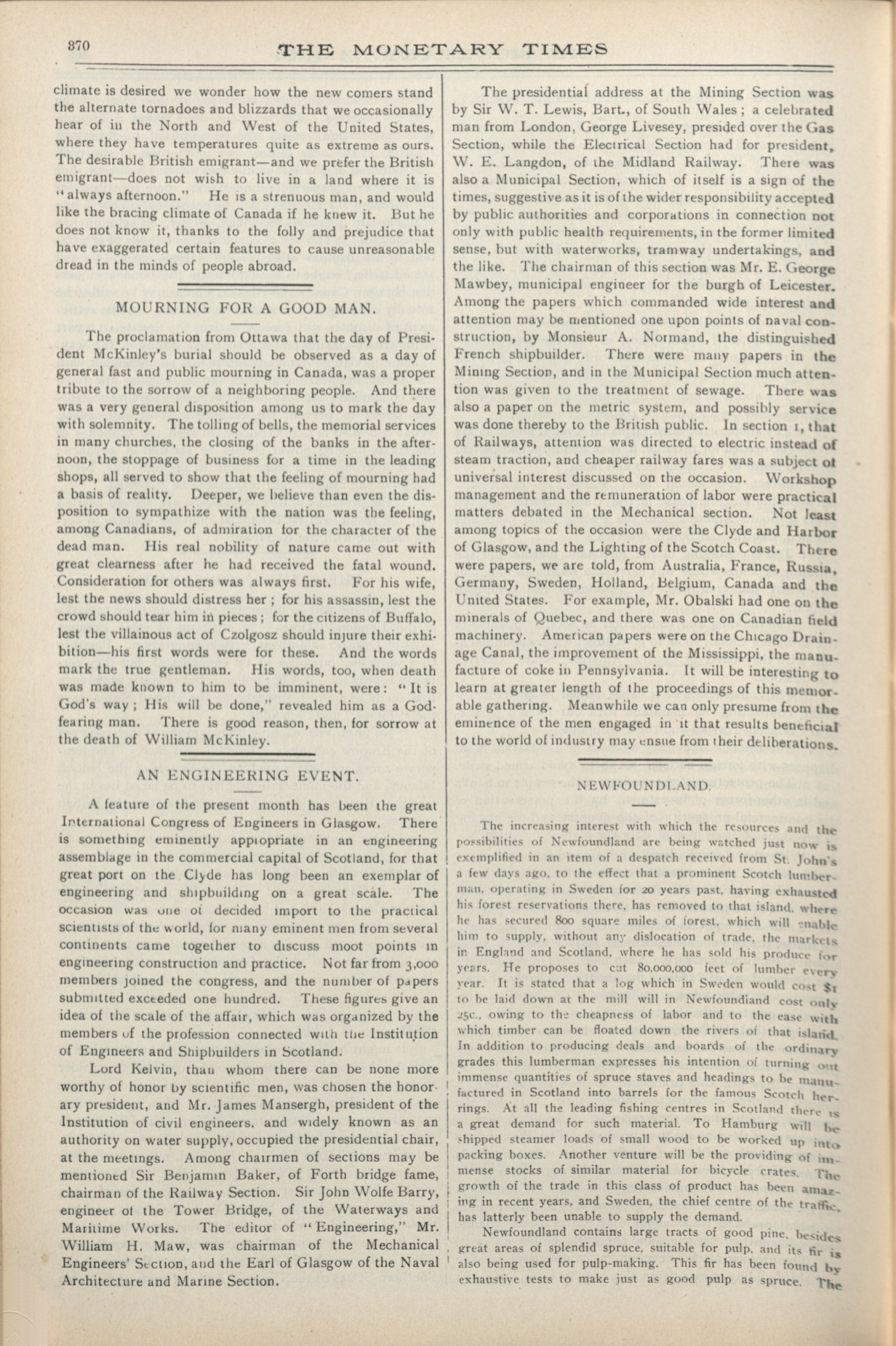 Toronto : Published by The Monetary Times Printing Co. of Canada, Limited, [1901]; 32 images avec recherche en texte intégral
