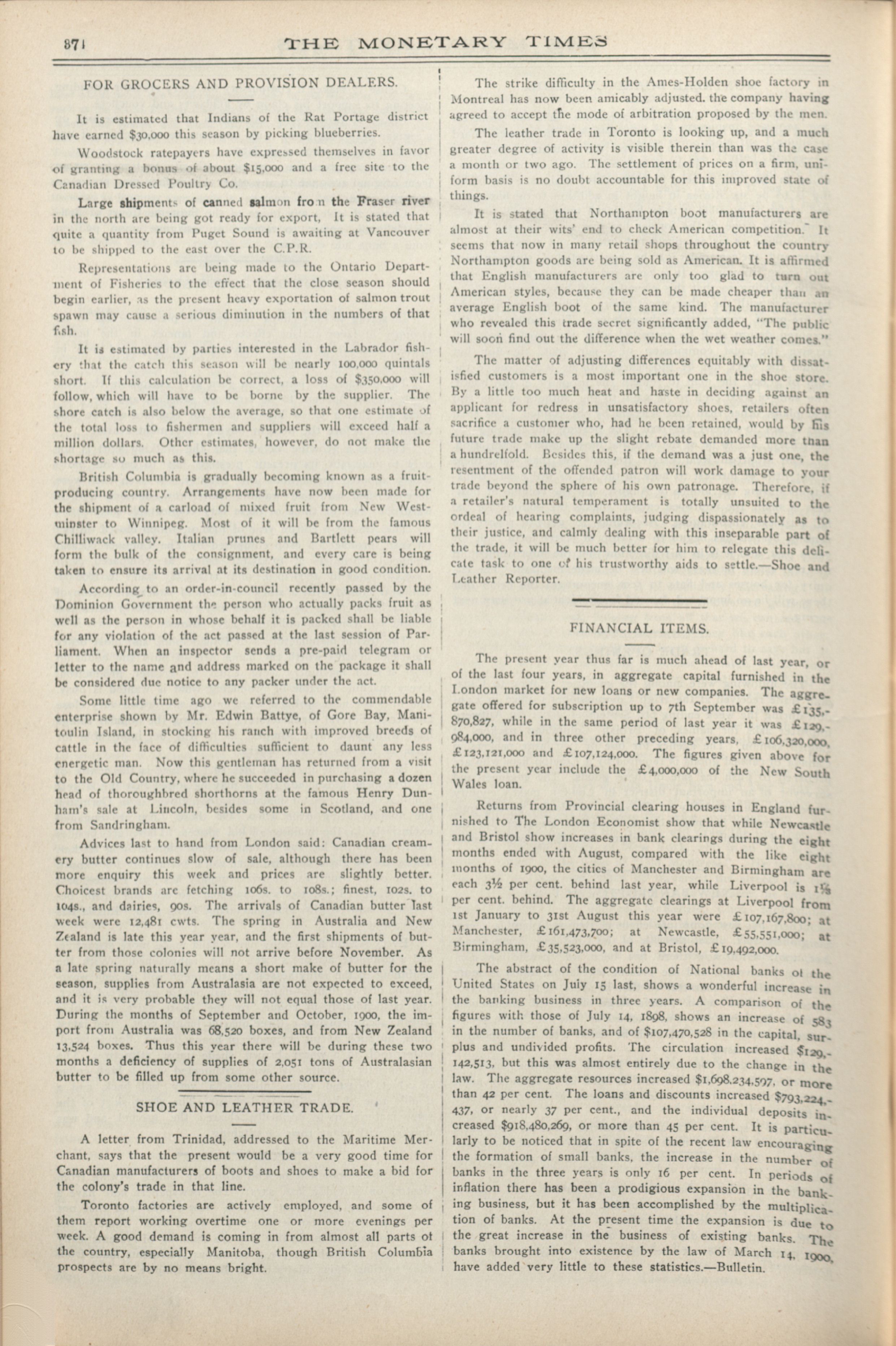 - The Monetary Times, trade review and insurance chronicle. : Vol. XXXV No. 12 (September 20, 1901)