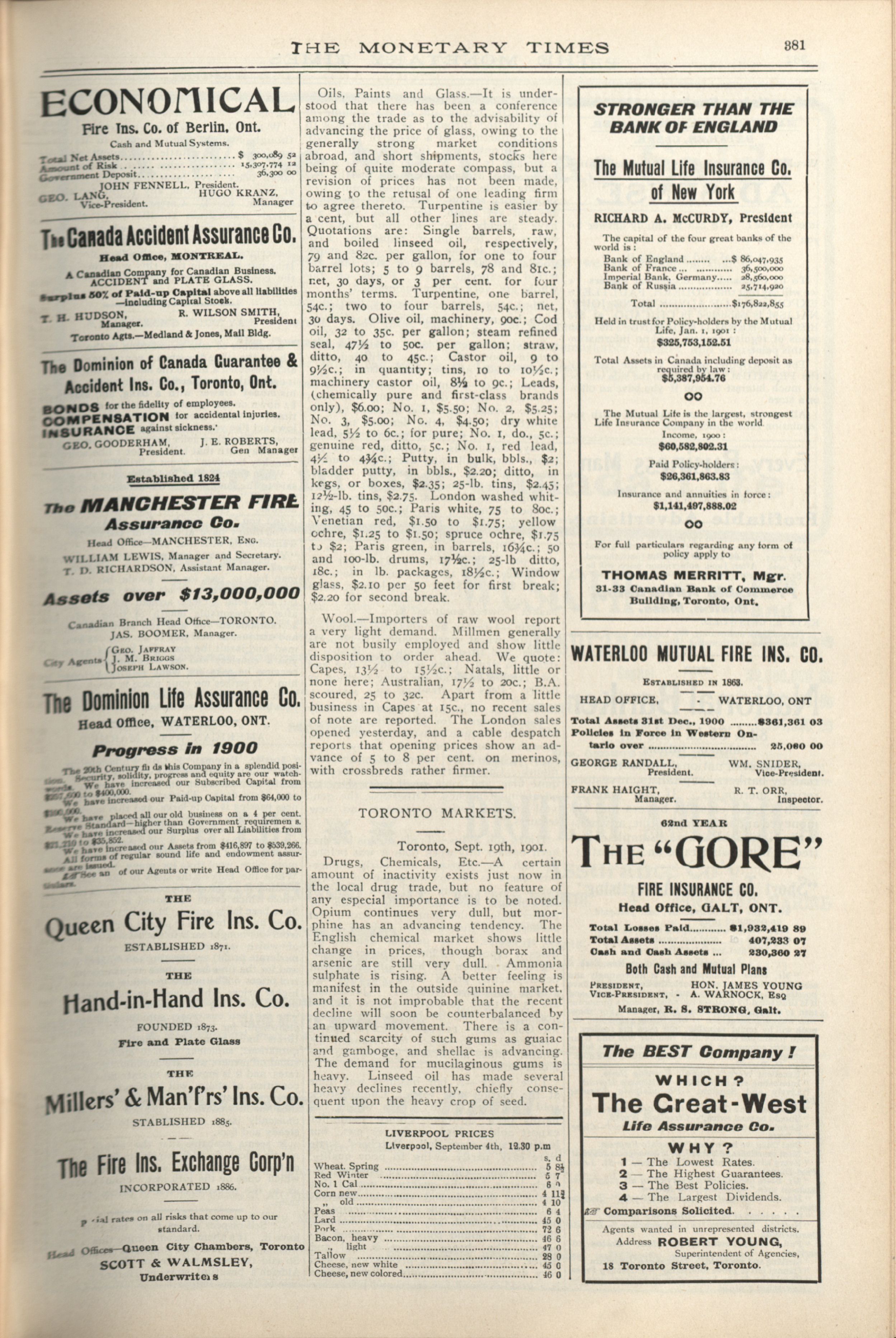 - The Monetary Times, trade review and insurance chronicle. : Vol. XXXV No. 12 (September 20, 1901)