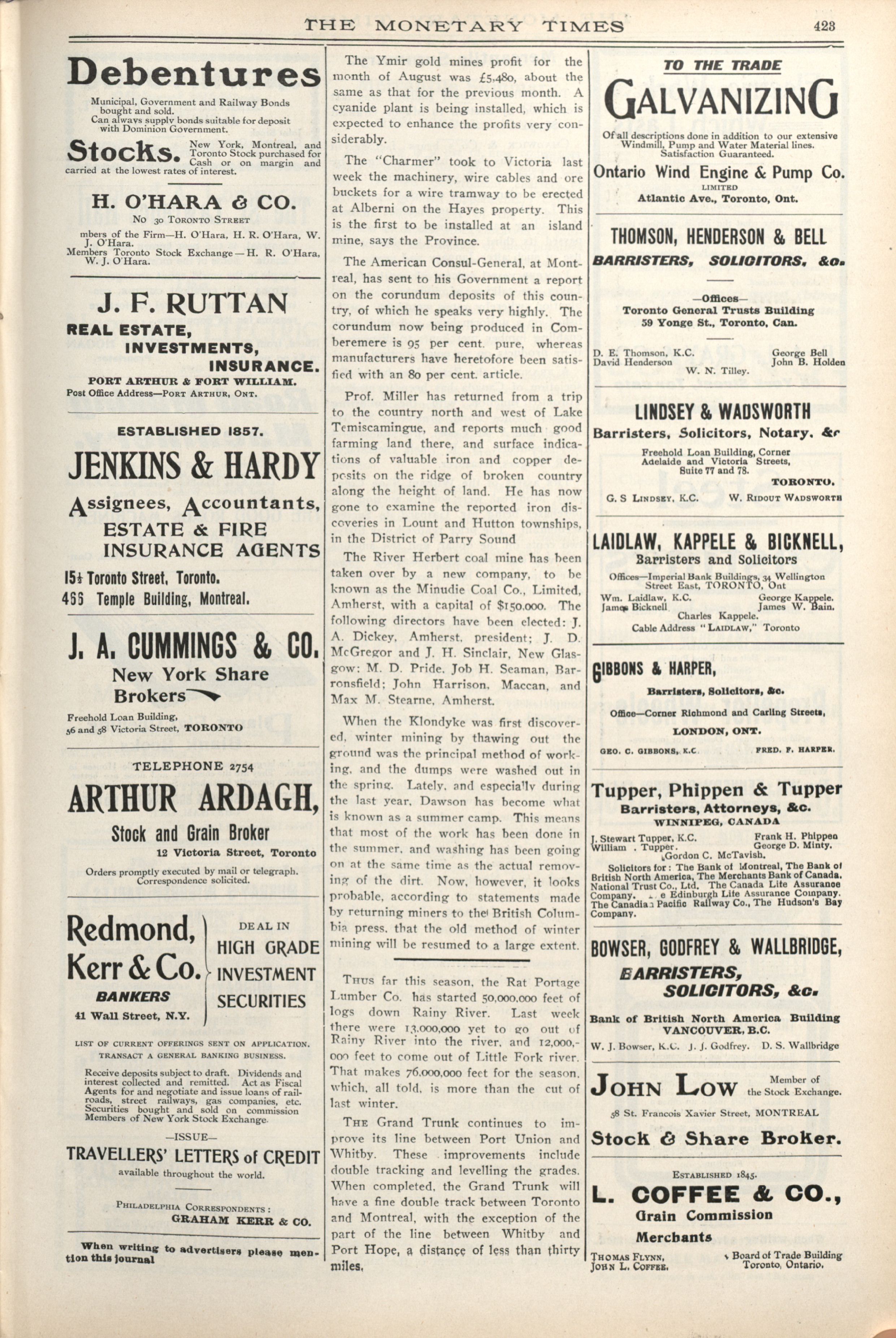 The Monetary Times, trade review and insurance chronicle. : Vol. XXXV No. 14 (October 4, 1901)