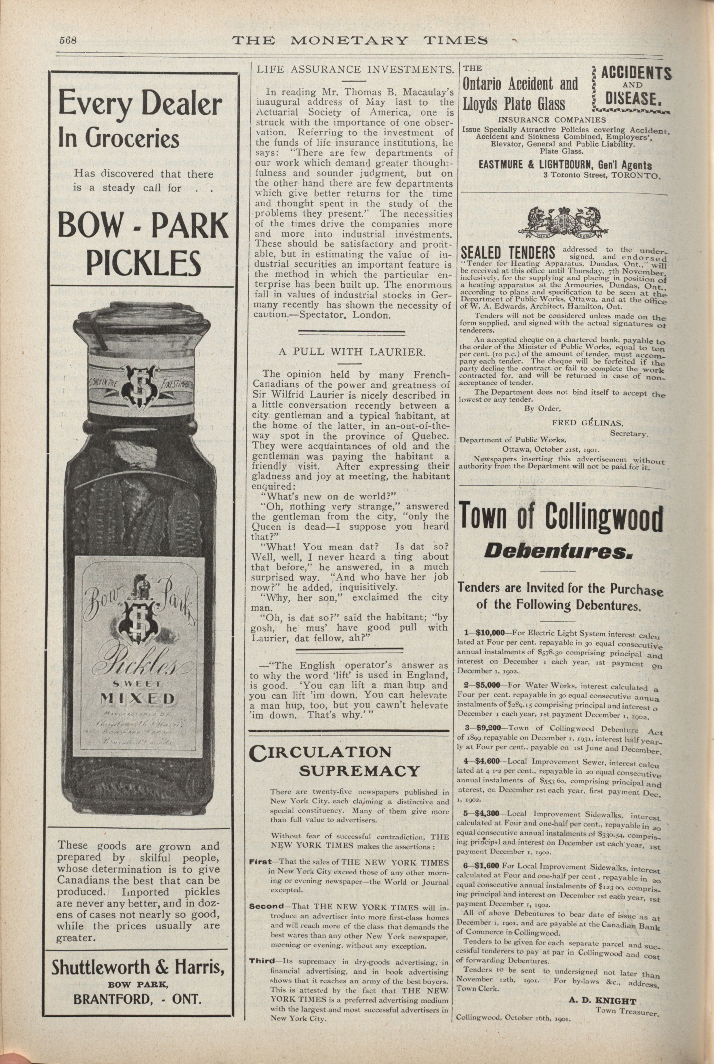- The Monetary Times, trade review and insurance chronicle. : Vol. XXXV No. 18 (November 1, 1901)